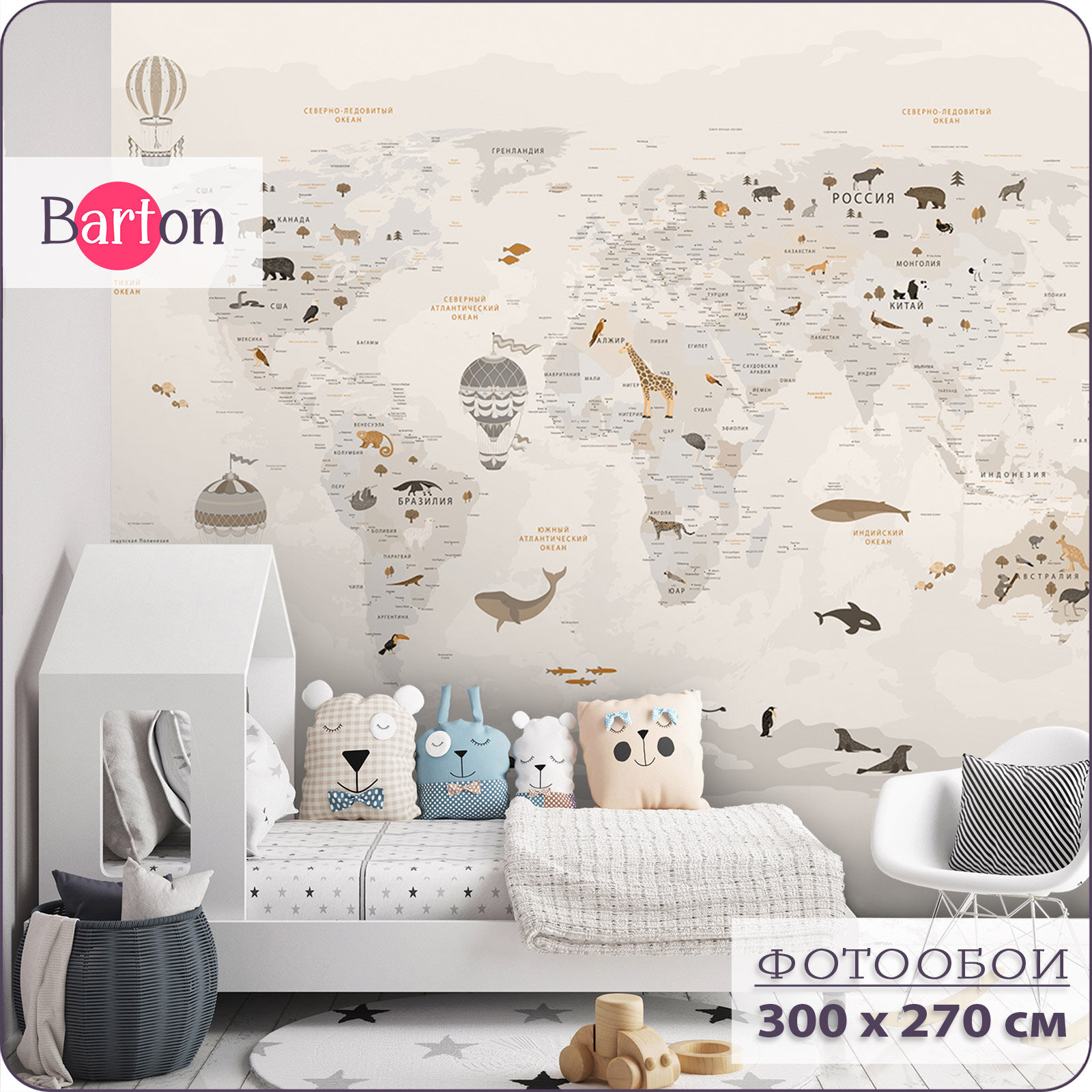 Фотообои на стену флизелиновые 3d Детские Карта Мира 300х270 см Bartonwall K185-B информация: