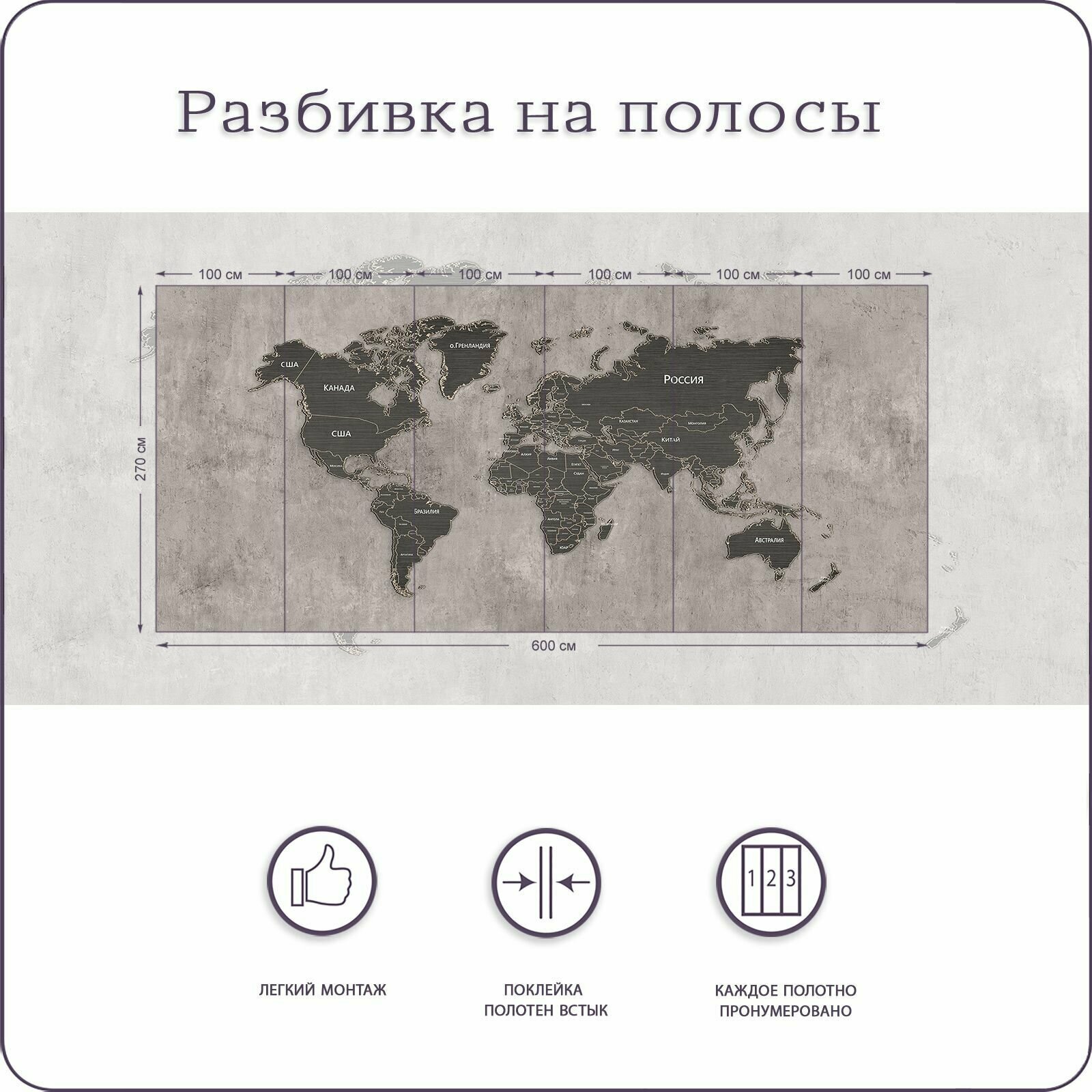Фотообои на стену флизелиновые 3d Карта Мира 600х270 см Bartonwall M216 информация: