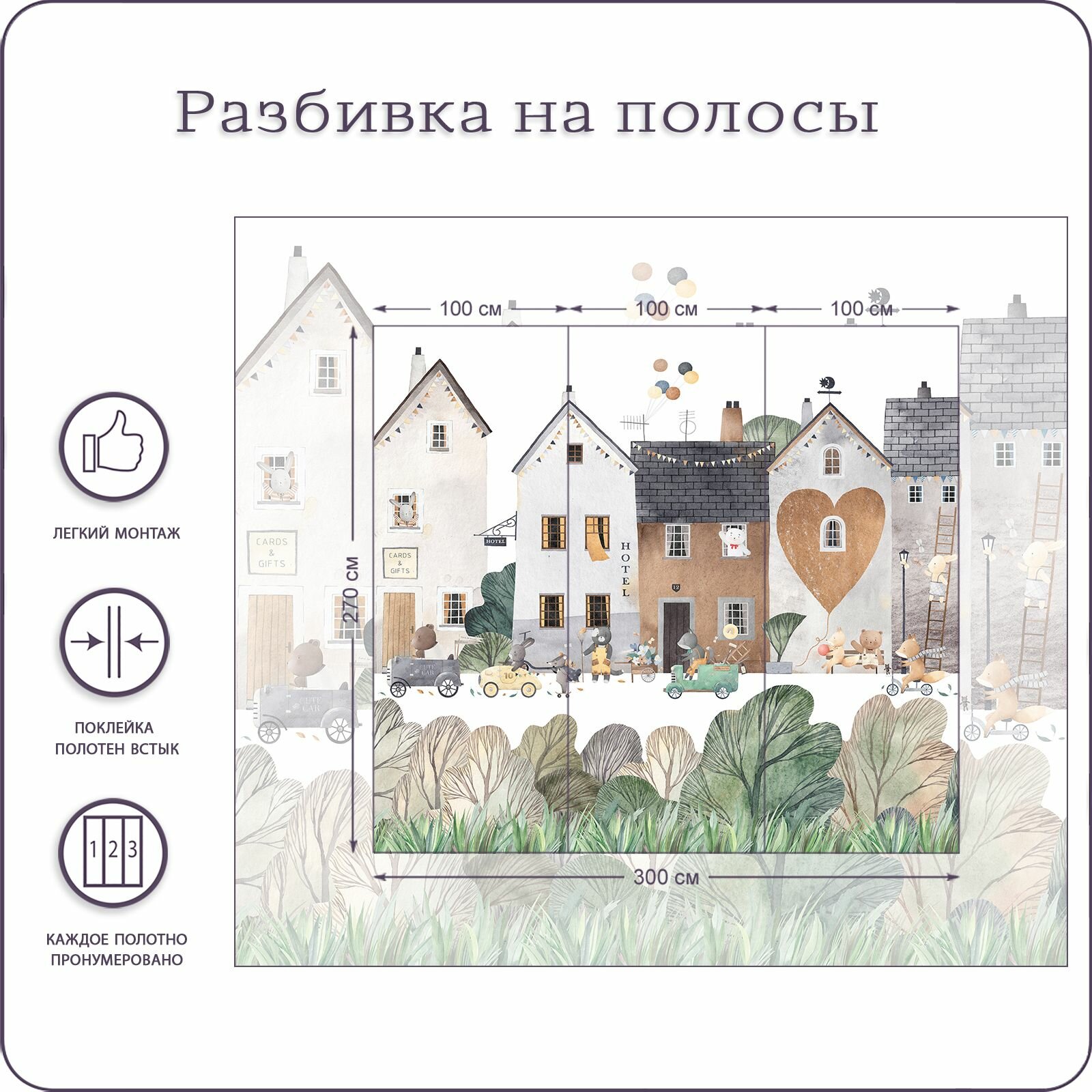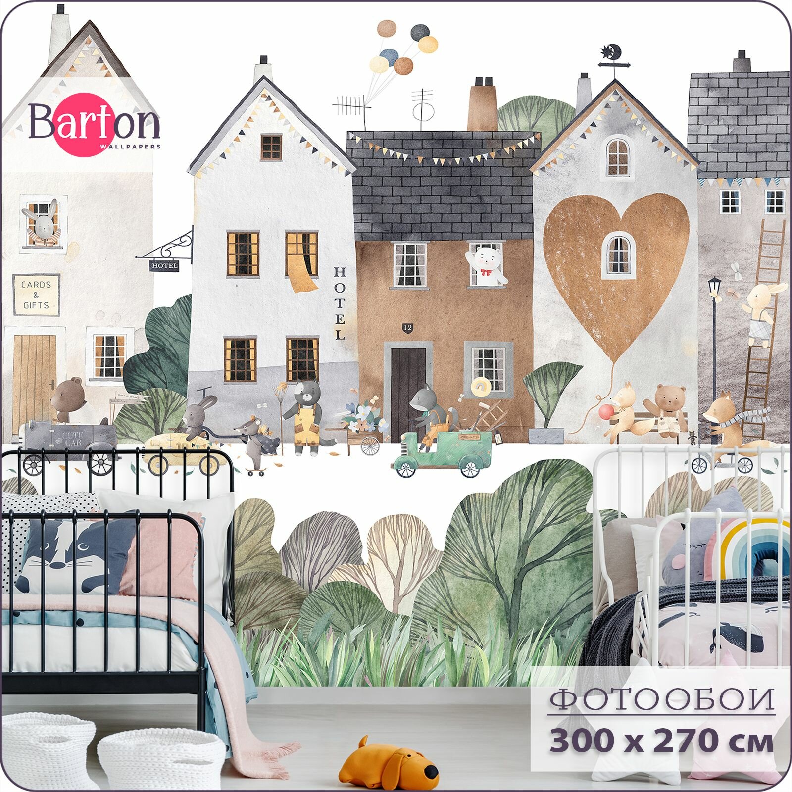 Отзывы на Фотообои на стену флизелиновые 3d Детские Домики Животные 300х270 см Bartonwall K291