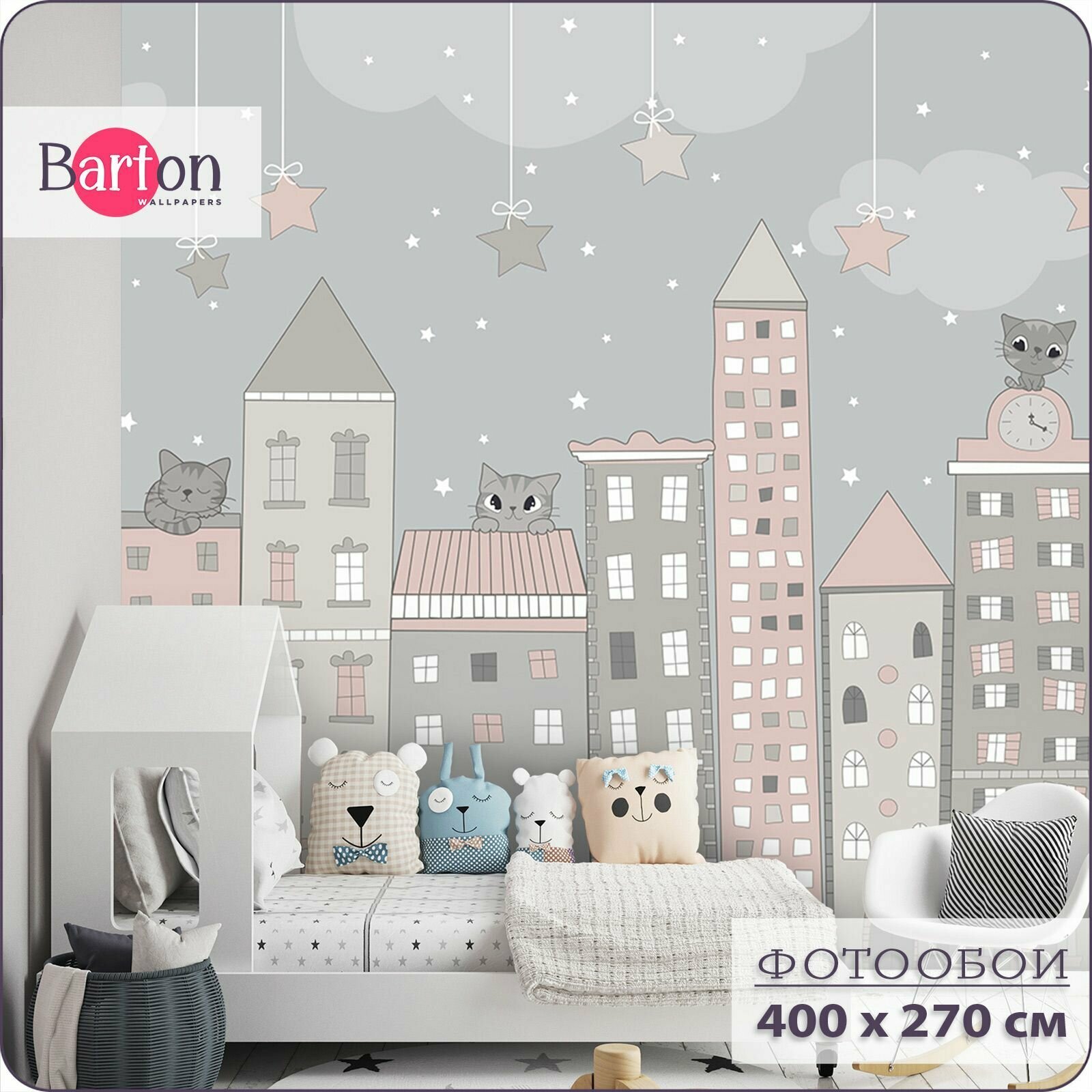 Отзывы на Фотообои на стену флизелиновые 3d Детские Домики Котенок 400х270 см Bartonwall K243