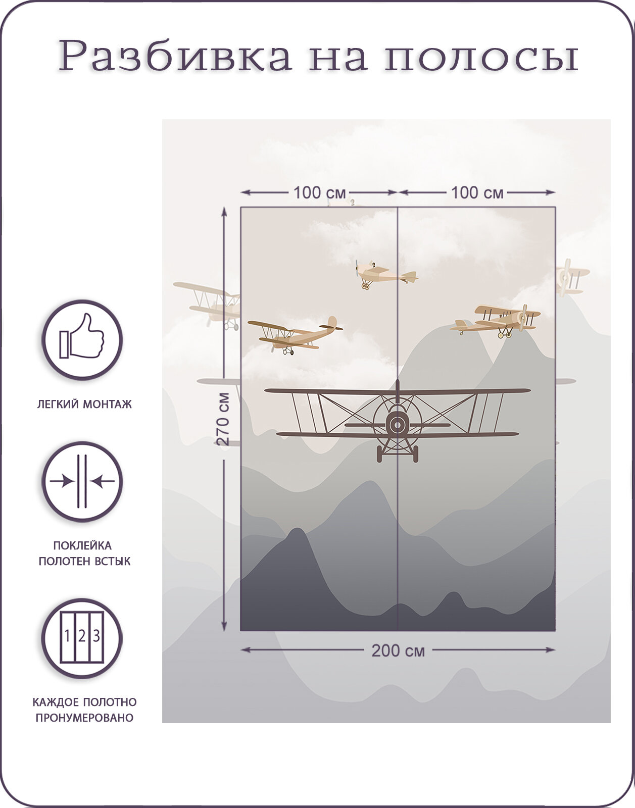 Фотообои на стену флизелиновые 3d Детские Для мальчиков Горы Самолет 200х270 см Bartonwall K083 информация: