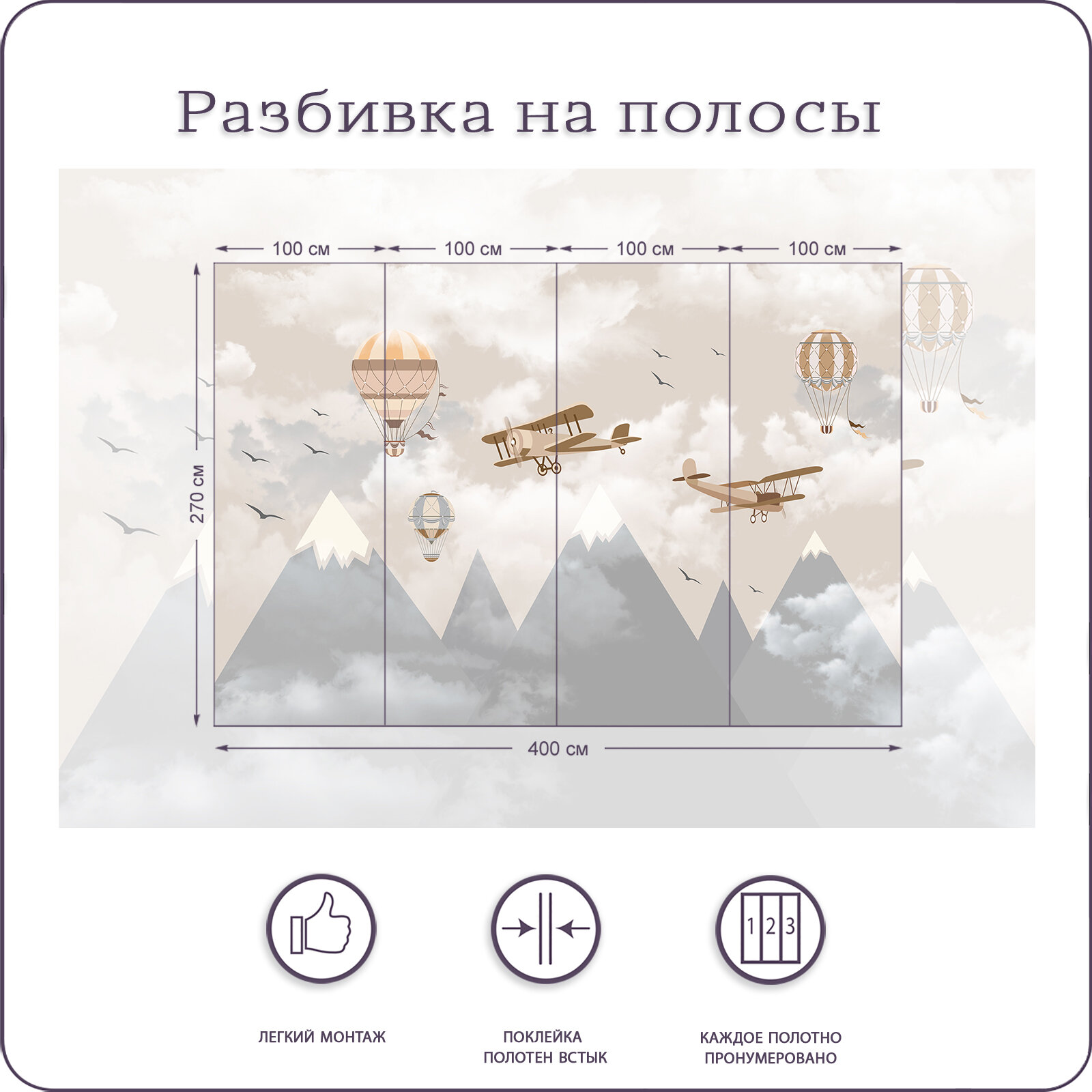 Фотообои на стену флизелиновые 3d Детские Воздушный шар Горы Самолет 400х270 см Bartonwall K068-Z 9 200 ₽