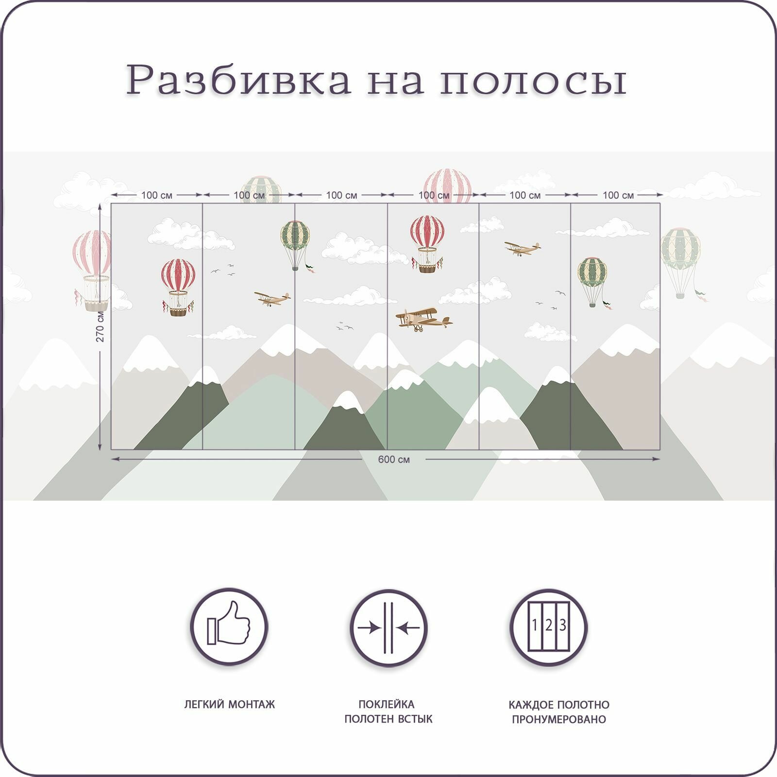 Фотообои на стену флизелиновые 3d Детские Воздушный шар Горы Самолет 600х270 см Bartonwall K068-Z информация: