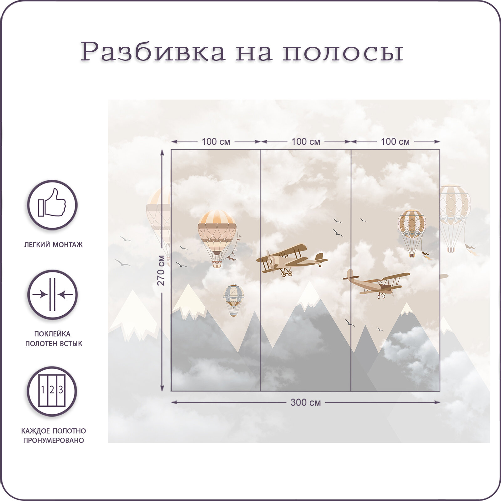 Фотообои на стену флизелиновые 3d Детские Воздушный шар Горы Самолет 300х270 см Bartonwall K068-Z 6 900 ₽