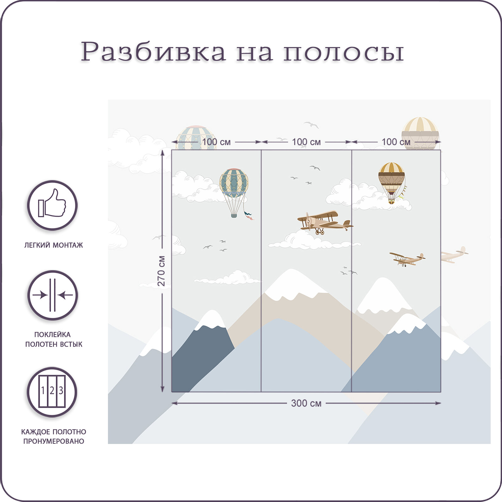 Фотообои на стену флизелиновые 3d Детские Воздушный шар Горы Самолет 300x270 см Bartonwall K068 информация: