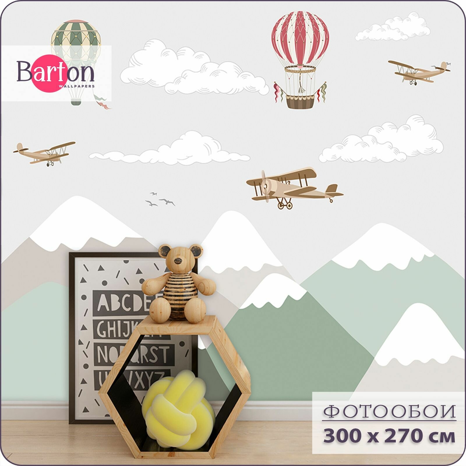 Фотообои на стену флизелиновые 3d Детские Воздушный шар Горы Самолет 300х270 см Bartonwall K068-Z информация: