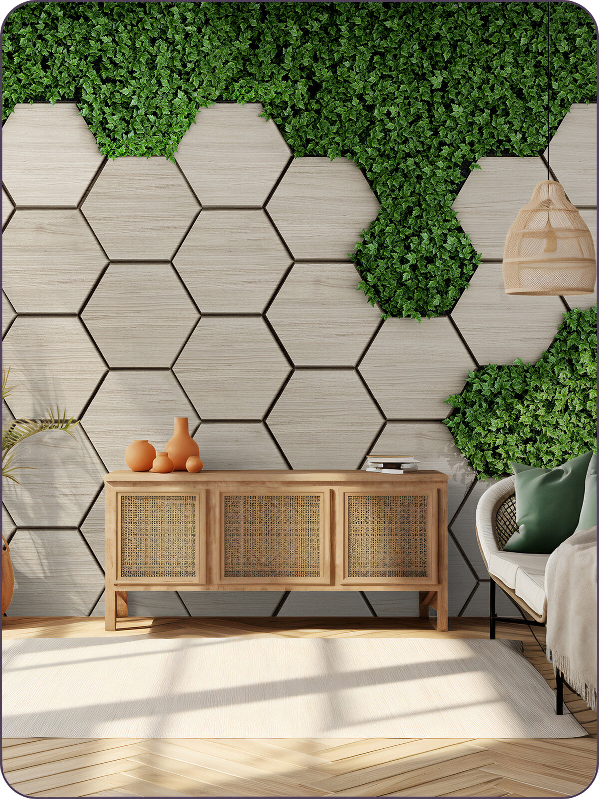 Фотообои на стену флизелиновые 3d Соты Листья Трава 300х270 см Bartonwall M095-W 6 900 ₽