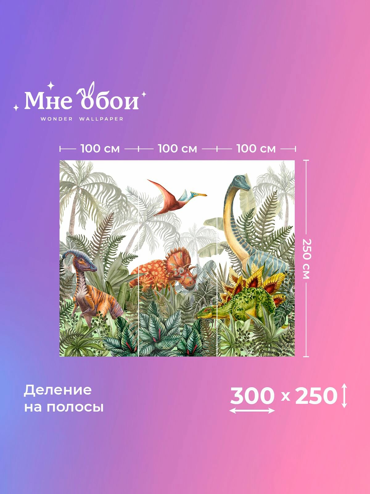 Фреска флизелиновая - детские 3D фотообои на стену "Wild Dino" 600х250 (ШхВ), Динозавры, 3д обои в детскую 9 139 ₽