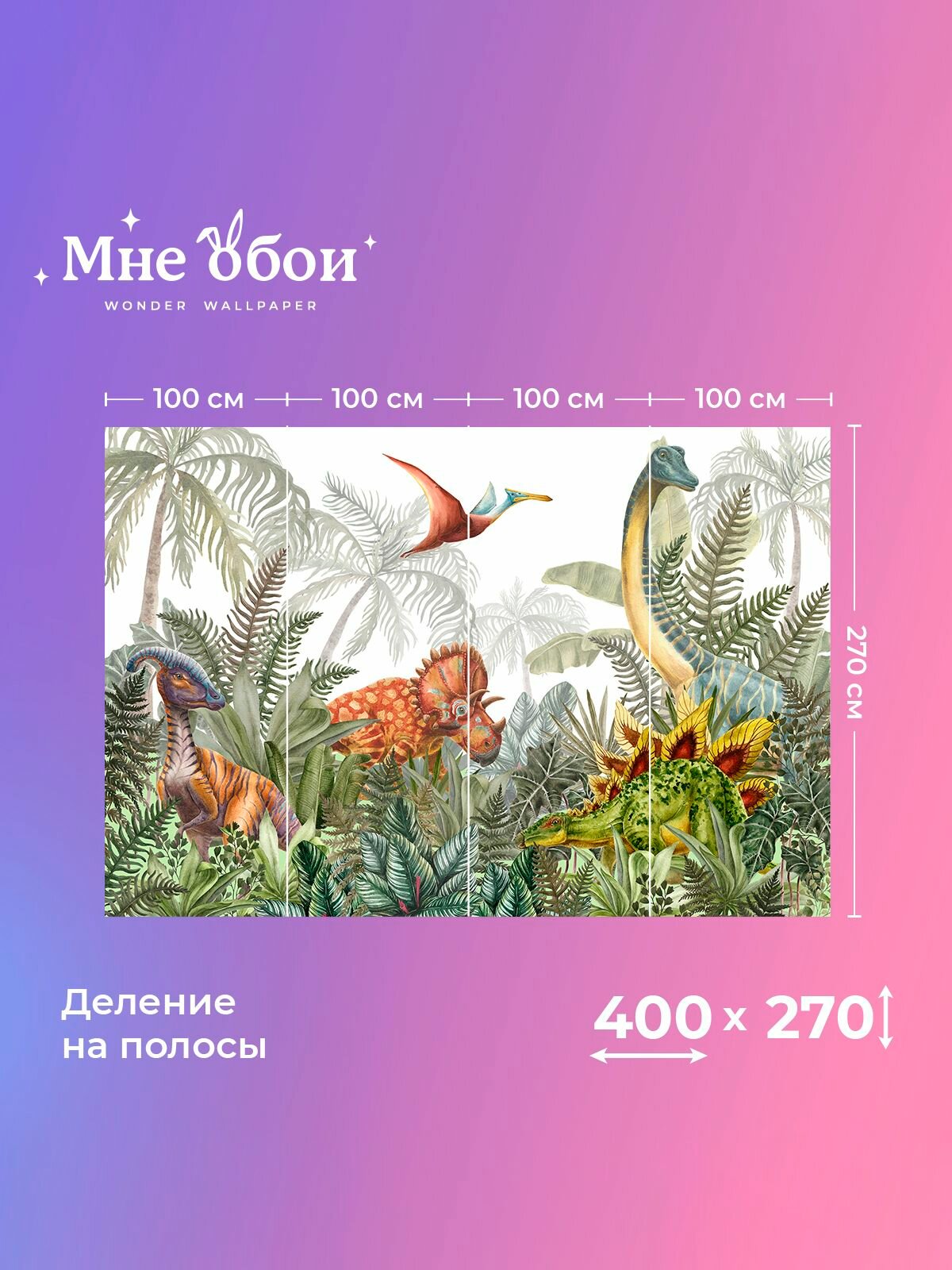 Фреска флизелиновая - детские 3D фотообои на стену "Wild Dino" 270х270 (ШхВ), Динозавры, 3д обои в детскую 4 442 ₽