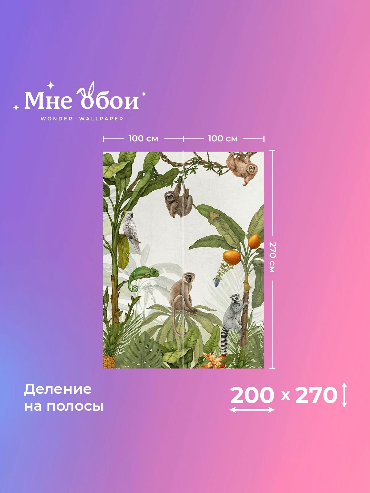 Отзывы на Фреска флизелиновая - детские 3D фотообои на стену "Животные джунглей " 200х270 (ШхВ), 3д обои в детскую