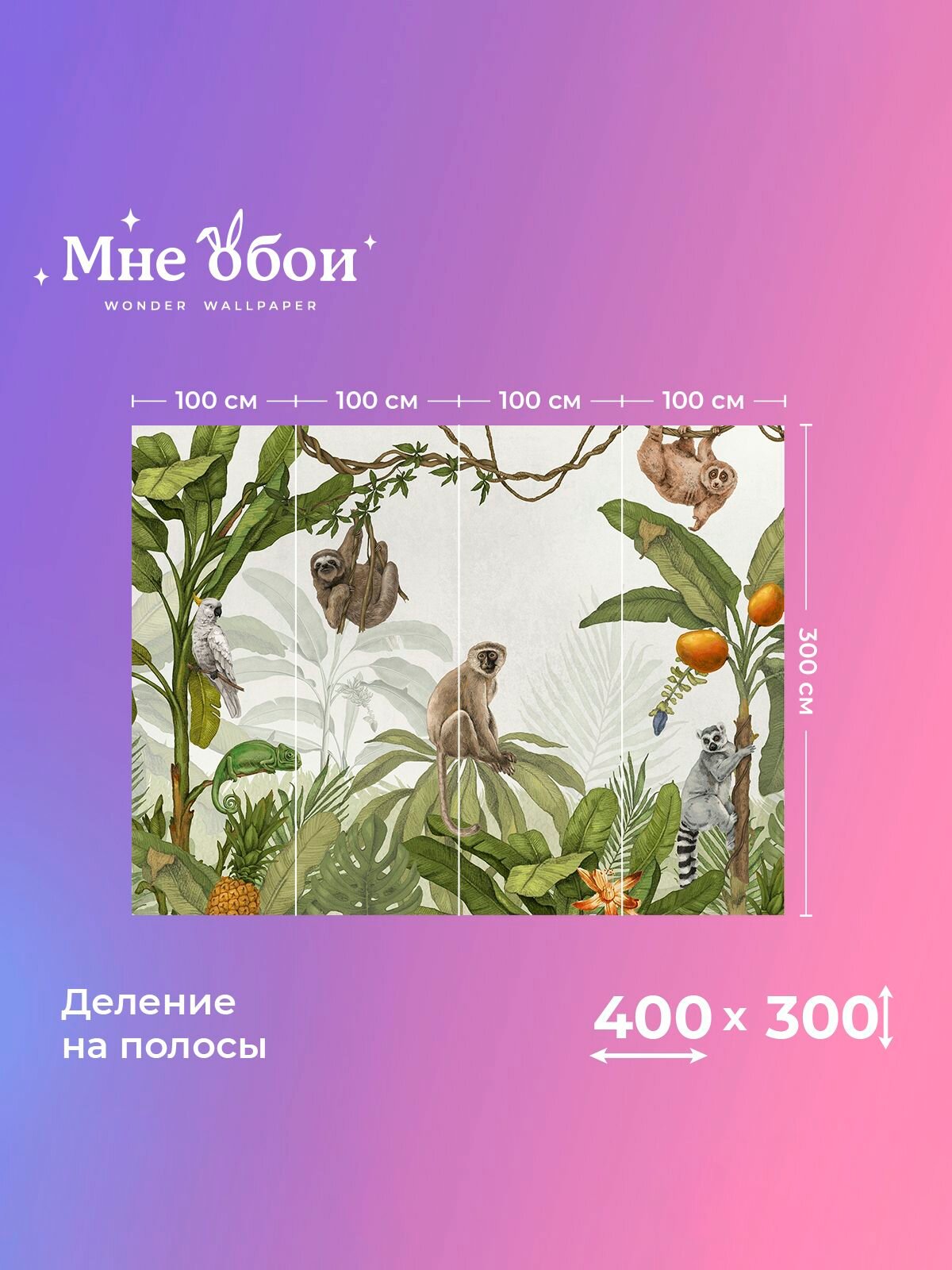 Фреска флизелиновая - детские 3D фотообои на стену "Джунгли" 400х300 (ШхВ), Животные, 3д обои в детскую 7 311 ₽