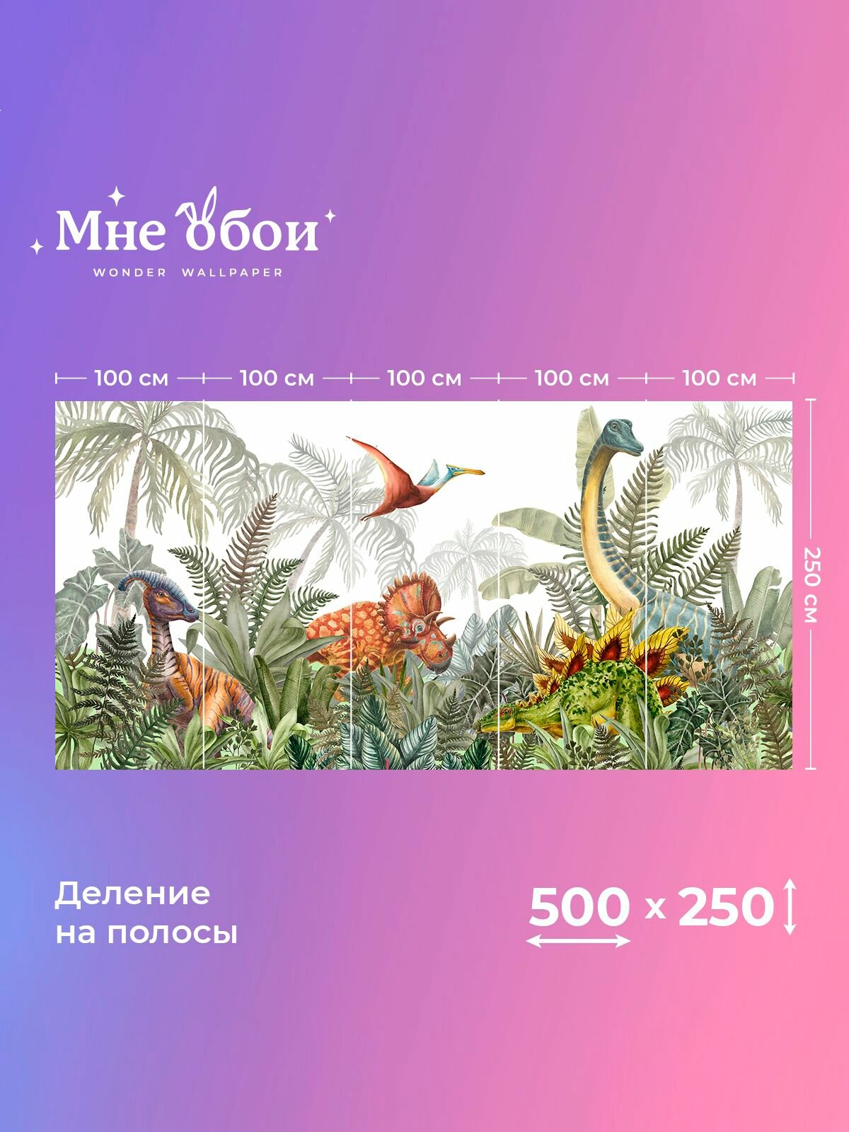 Фреска флизелиновая - детские 3D фотообои на стену "Wild Dino" 600х250 (ШхВ), Динозавры, 3д обои в детскую 9 139 ₽