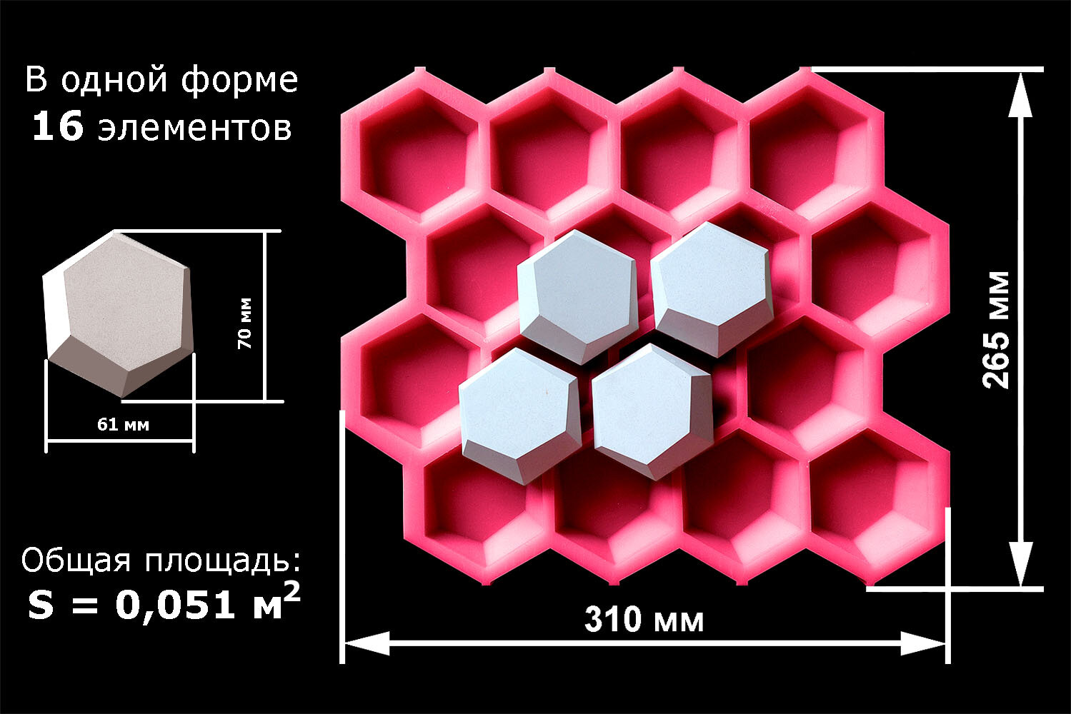 Силиконовая форма ZIKAM "3D Мозаика соты" для литья из гипса своими руками в домашних условиях DIY информация: