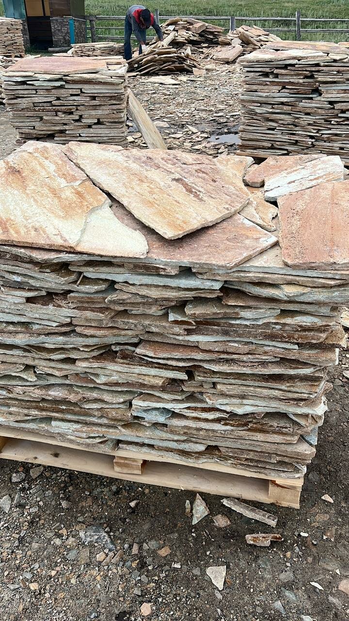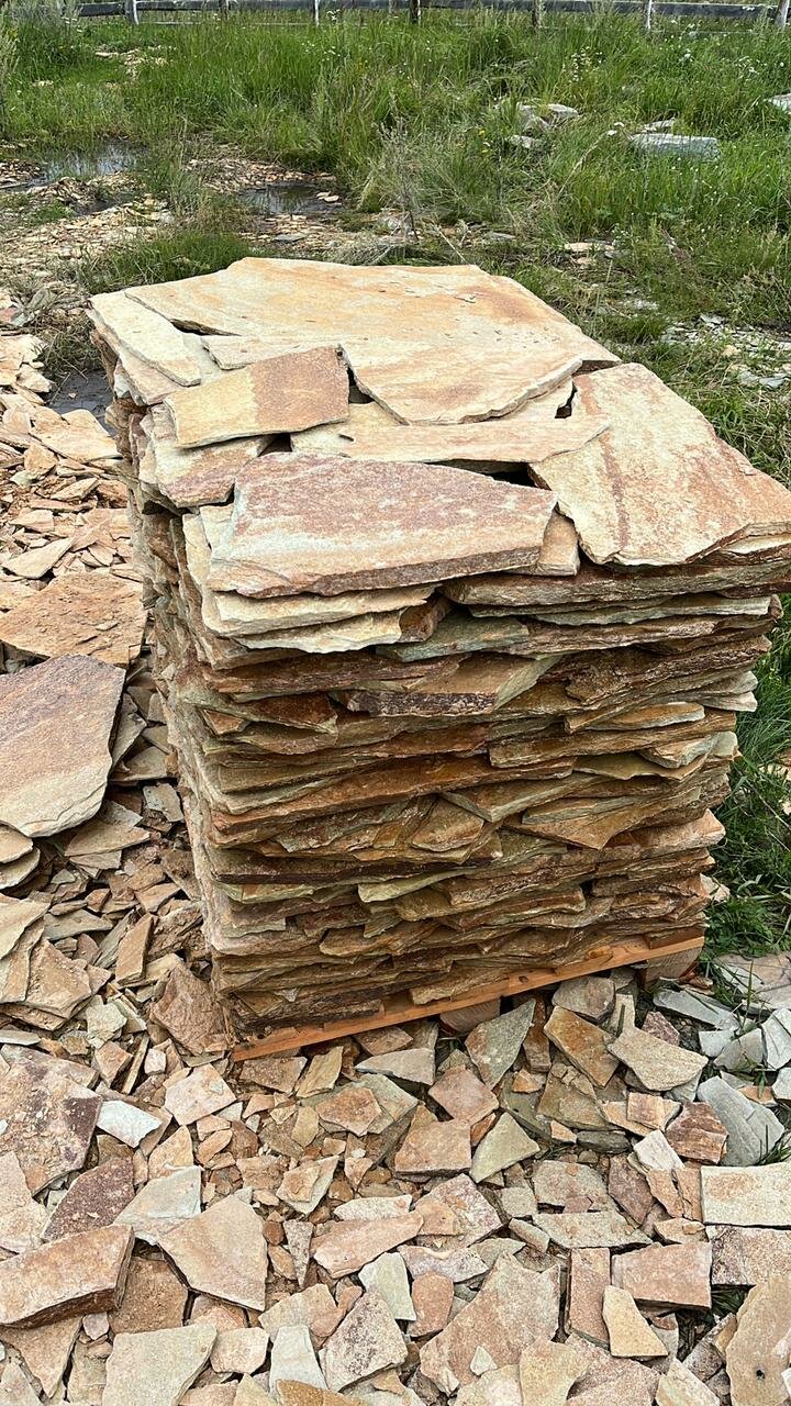 Плитняк (рваный) златолит для отделки цоколя, дорожек, благоустройство территории информация: