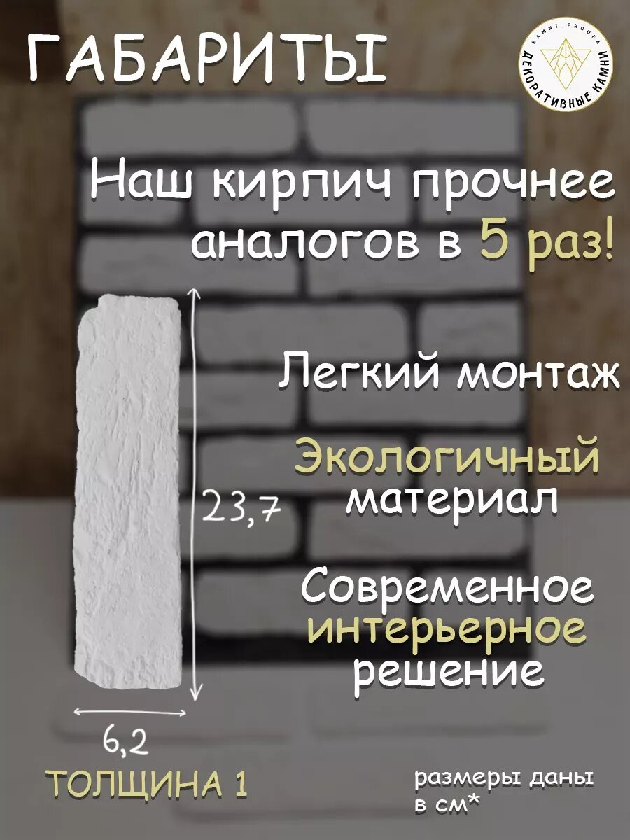 Облицовочные кирпичи белый КамниПроУфа, для внутренней отделки, рельефные, набор 58 штук 1 016 ₽