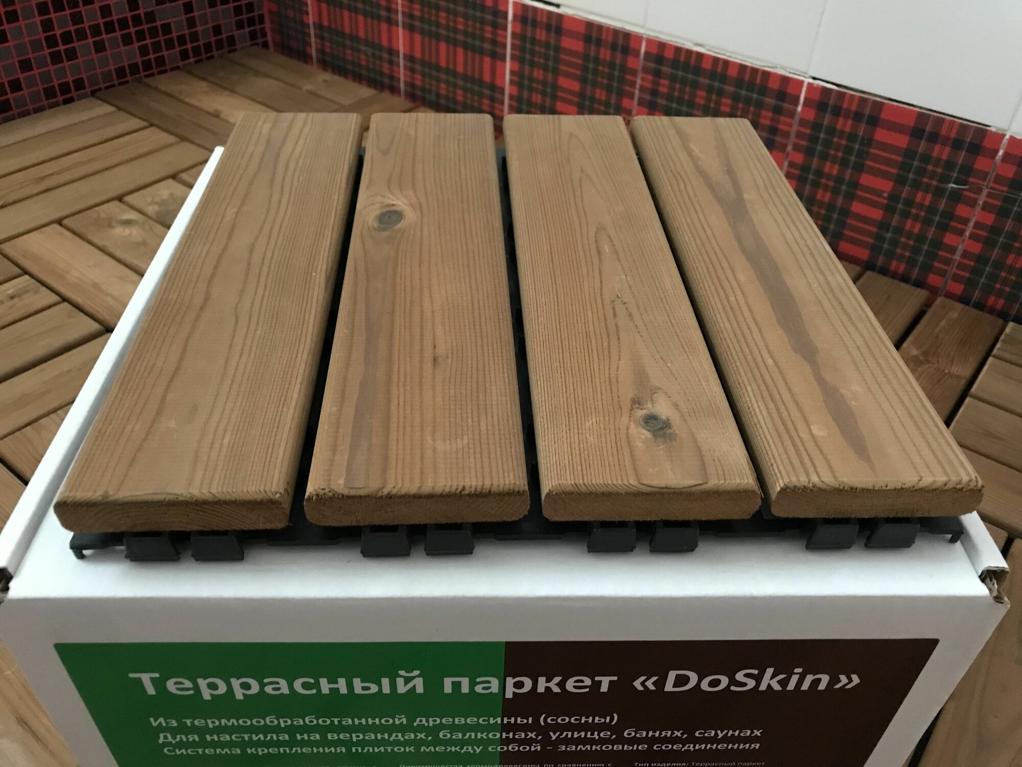 Отзывы на Террасный модульный паркет Doskin термодерево сосна (1 плитка 30х30см) 0,09 кв. м пол для бани и балкона