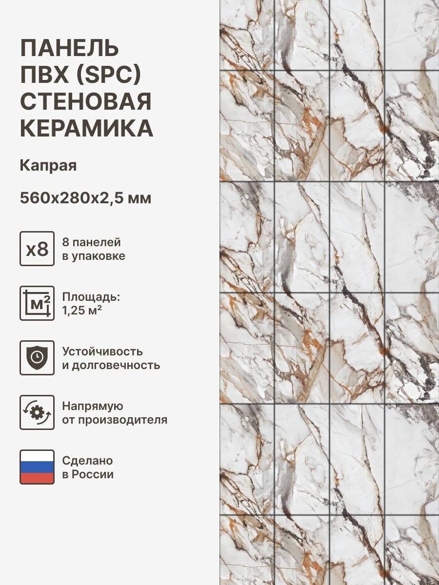 Стеновые панели ПВХ/SPC для стен, для кухни, для ванной глянец Капрая 560х280х2,5 мм (упаковка 8 штук) информация: