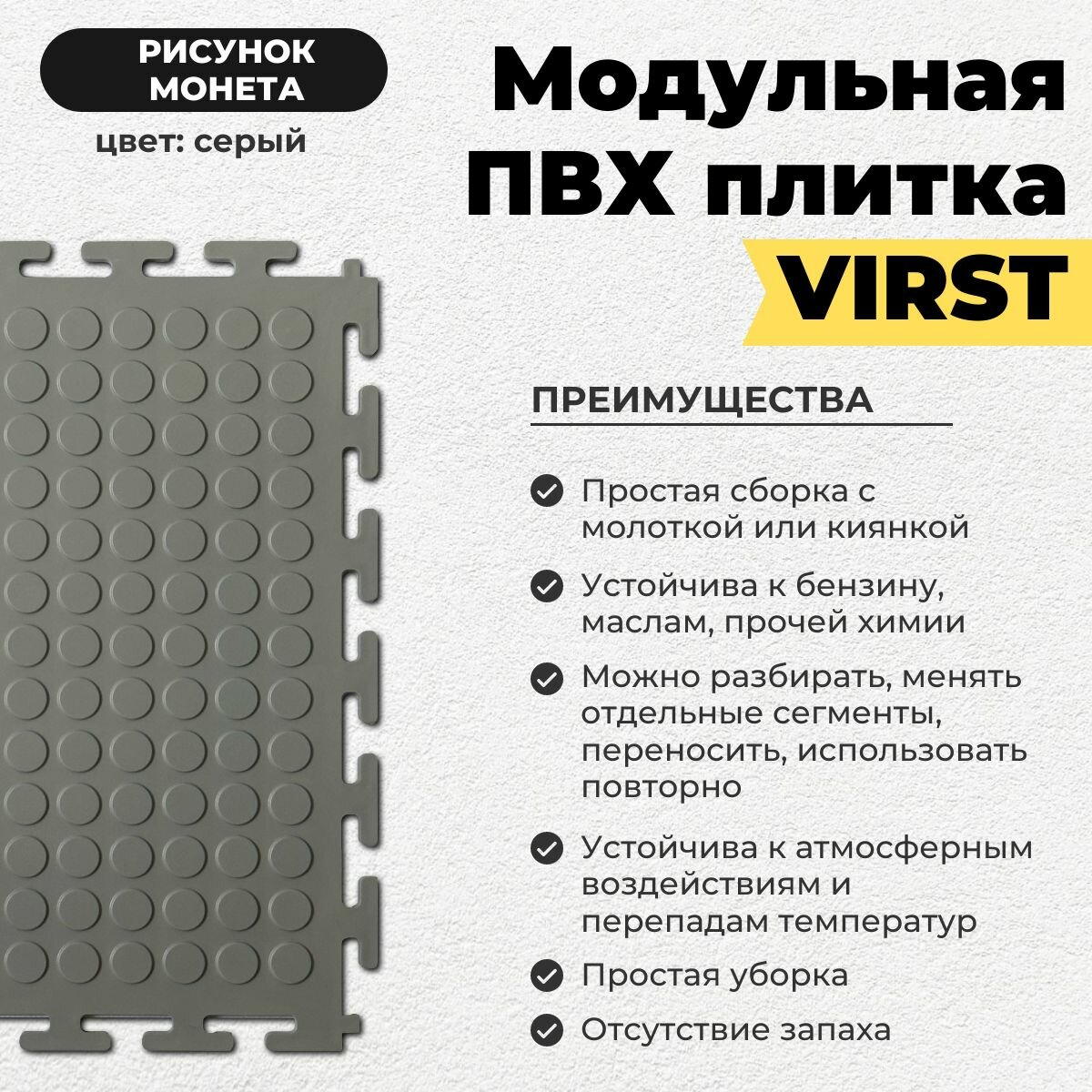 Отзывы на Плитка ПВХ модульная напольная, серая, рисунок монета, 250 х 250