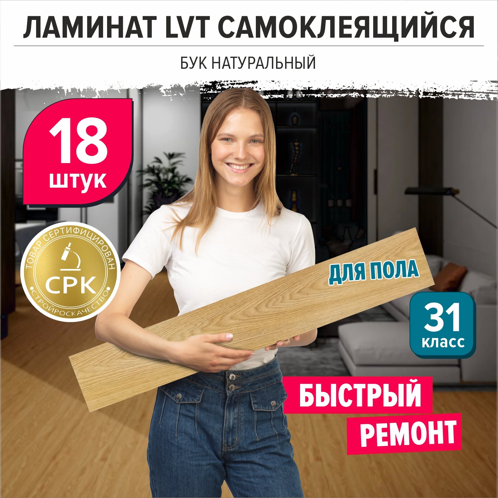 Отзывы на Кварц виниловый LVT ламинат под дерево для пола самоклеящийся влагостойкий Bazzart "Бук натуральный" 914х152 мм 18 шт.