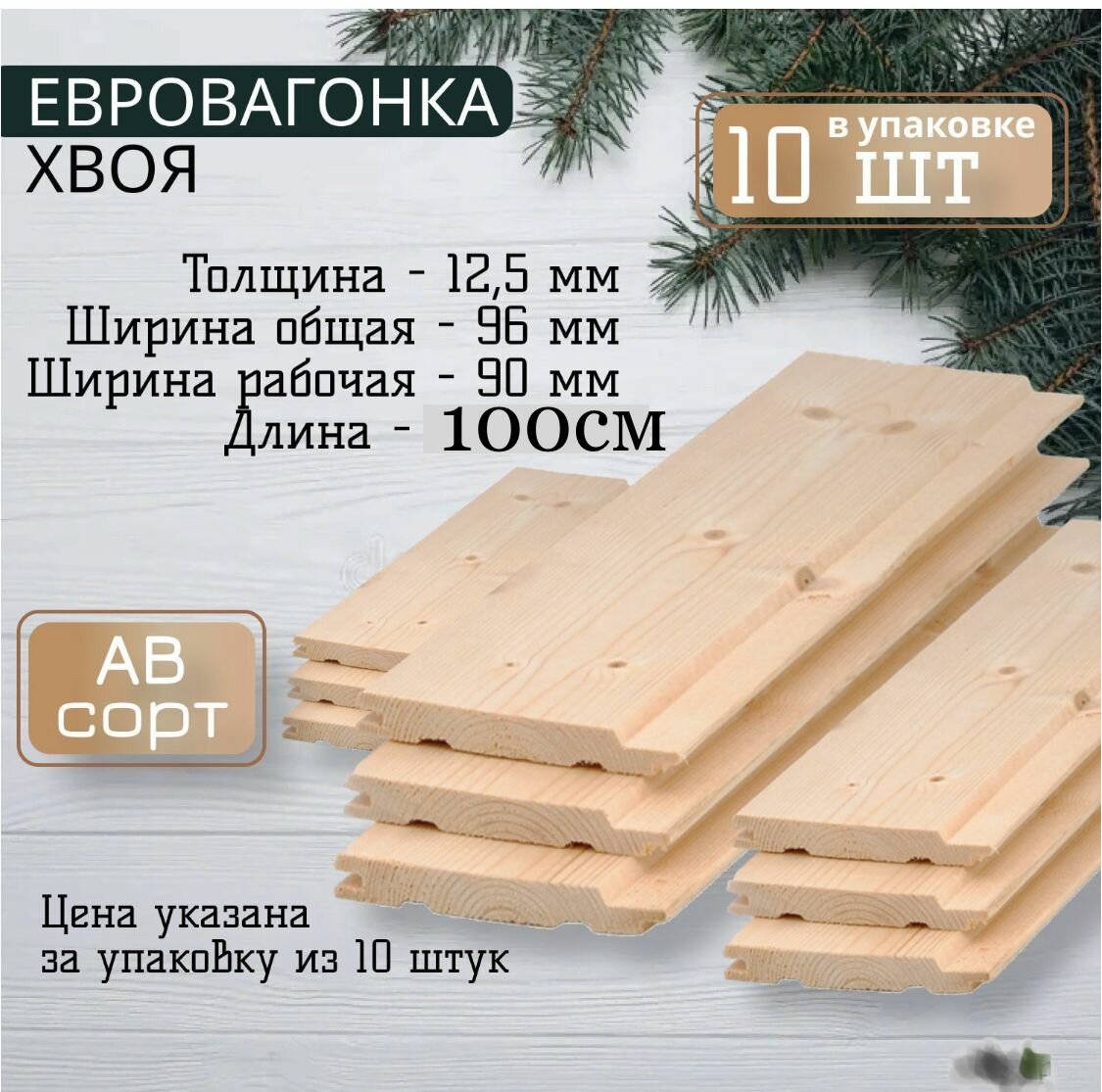 10 цен на Вагонка Сосна 100смХ9.6смХ1.3см 10 шт. в пачке-1 м2