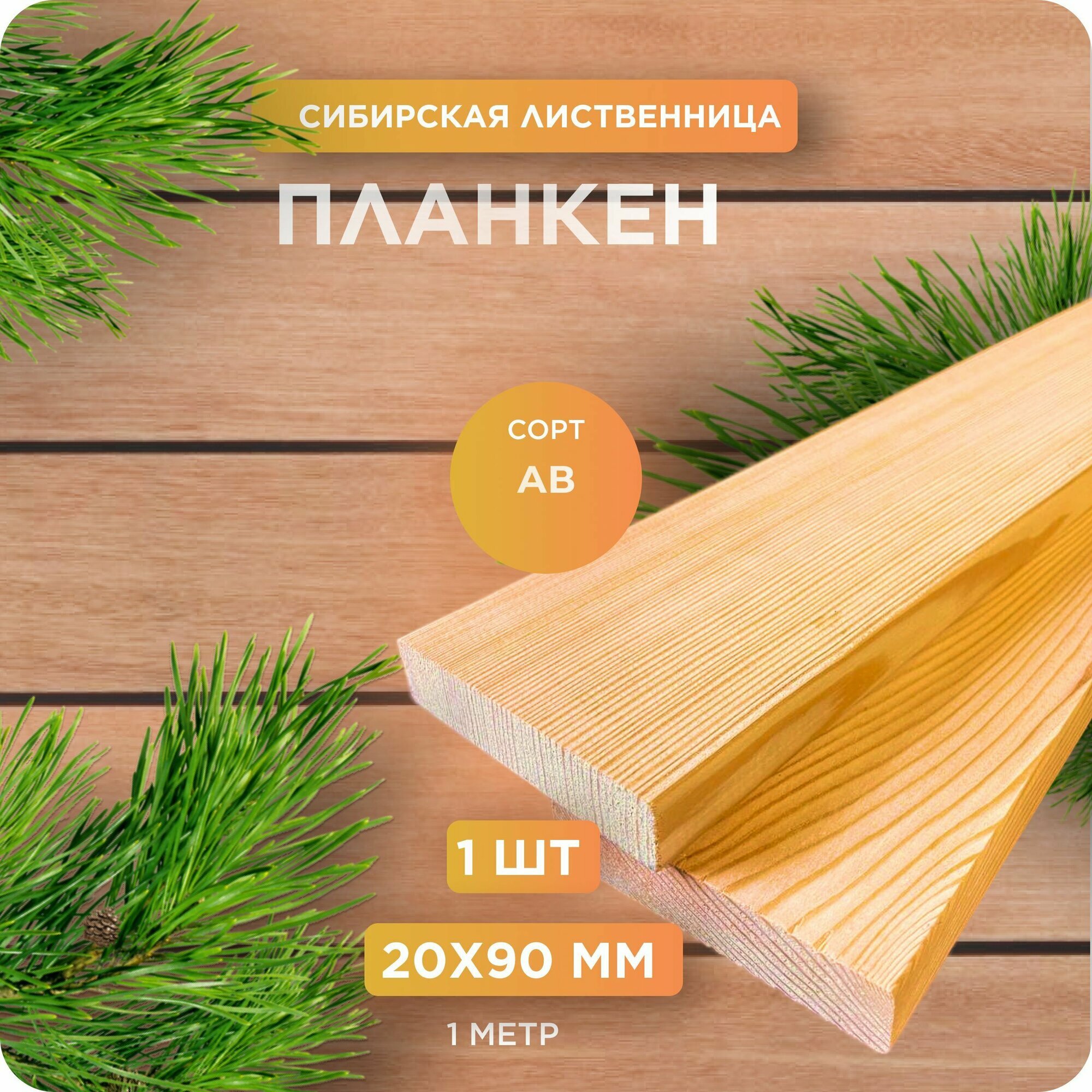 Планкен из лиственницы сорт АВ 20х90х1000 мм - 1 шт информация: