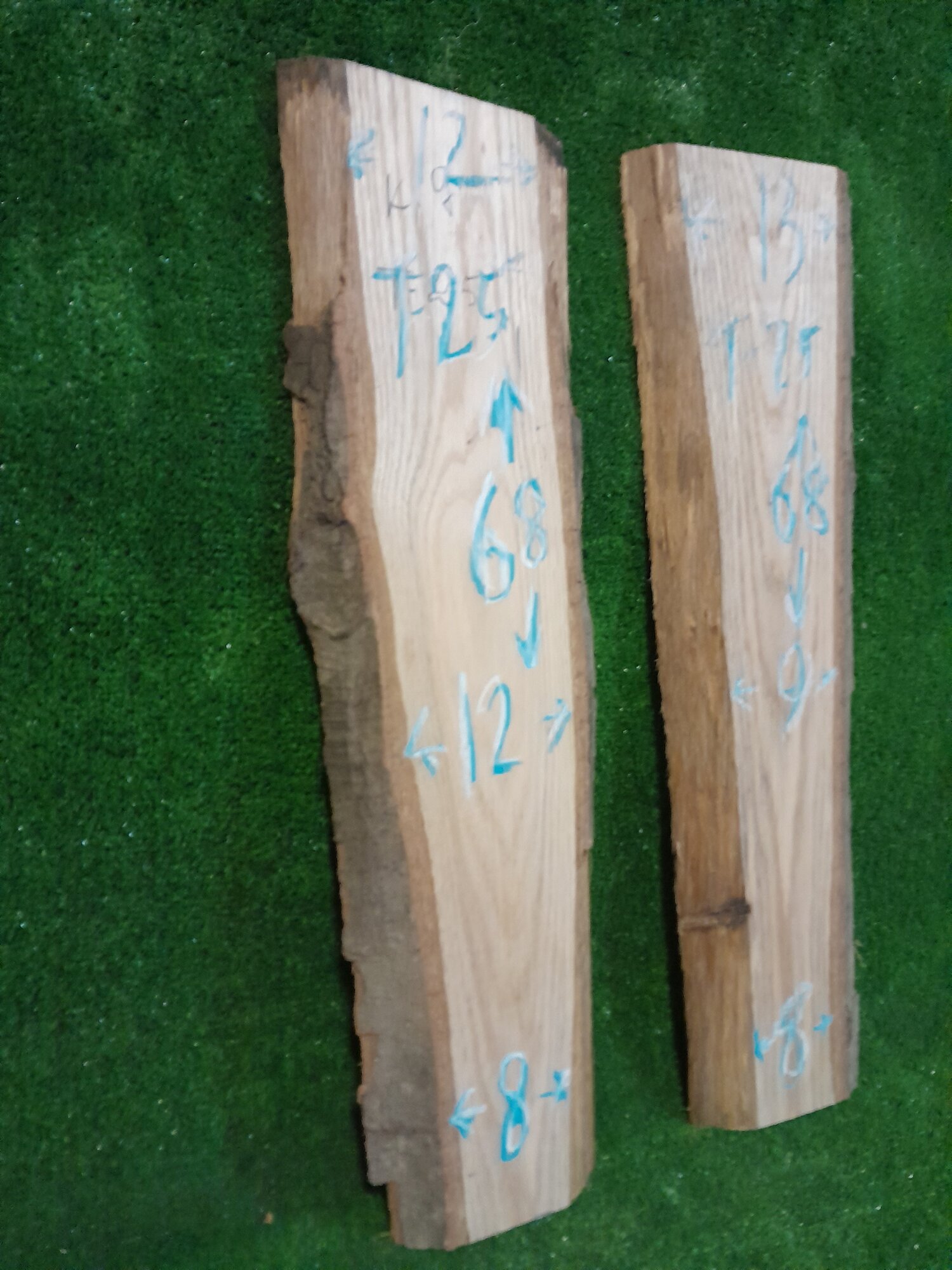 10 цен на Два слэба дерева красный дуб. 1 сорт. Отстроганы и откалиброваны. Размеры: 68*13-12-8*2,5 см и 68*8-9-12*2,5 см.
