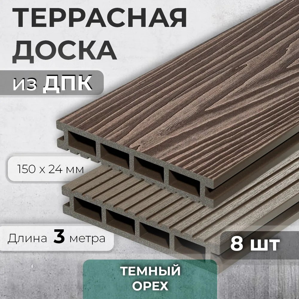 10 цен на Террасная доска из ДПК, Decking Urban PREMIUM, 150х24х3000 0,45м2 венге (Темный Орех), 8 шт
