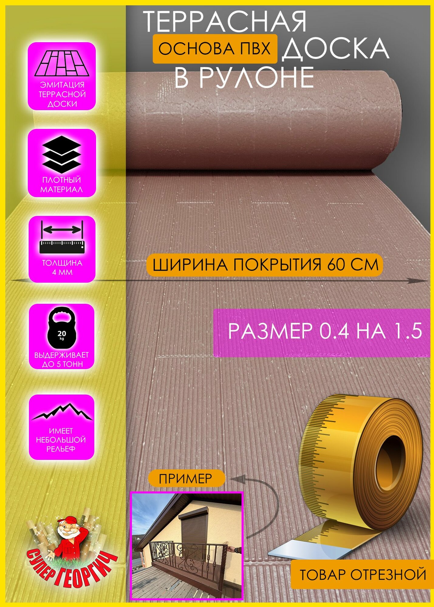 Террасная доска ПВХ 0,4 на 1,5 (В рулоне) информация:
