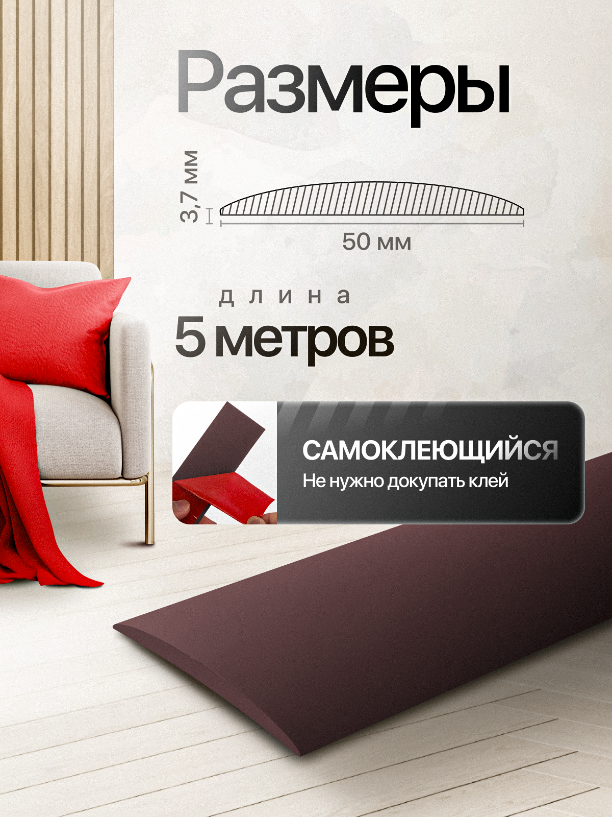 Наличник для дверей самоклеющиеся 5м ПВХ; гибкий плинтус для потолка и пола, цвет тёмно-коричневый информация: