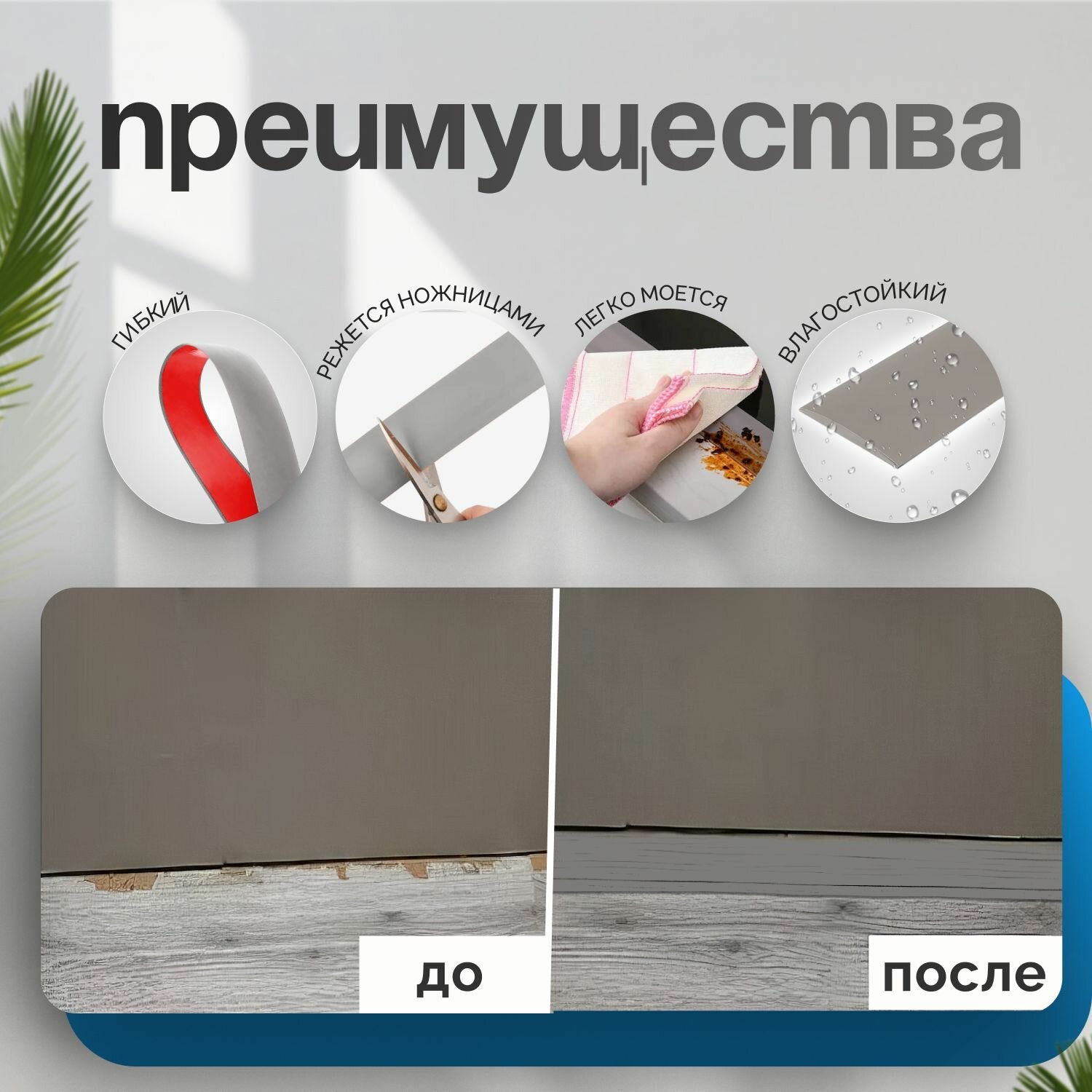 Отзывы на Самоклеящийся плинтус 5м гибкий пластиковый наличник на дверь ПВХ декоративные плинтуса
