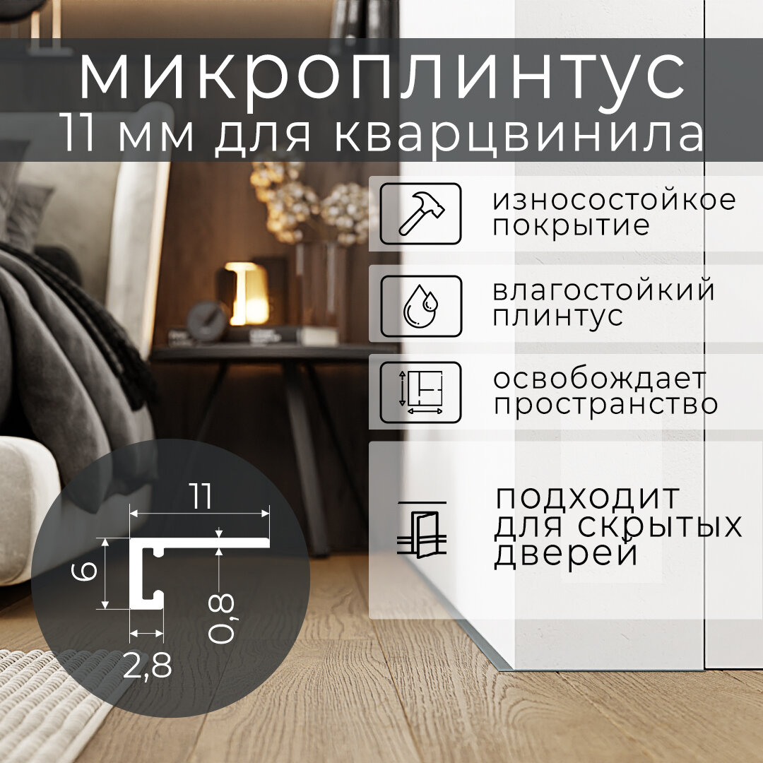 Микроплинтус 11 мм для кварцвинила Чёрно-серый 1 RAL 7021 (2.5 метра) информация: