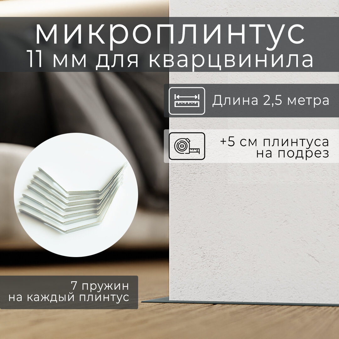 Микроплинтус 11 мм для кварцвинила Белый МУАР RAL 9016 (2.5 метра) 1 120 ₽