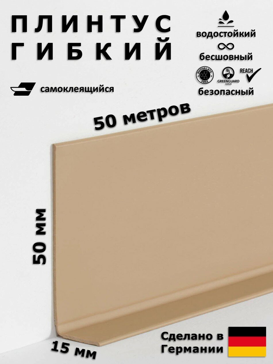 Плинтус гибкий самоклеящийся Dollken WLK50 914 Темно-бежевый 50x15 мм, 50 м информация: