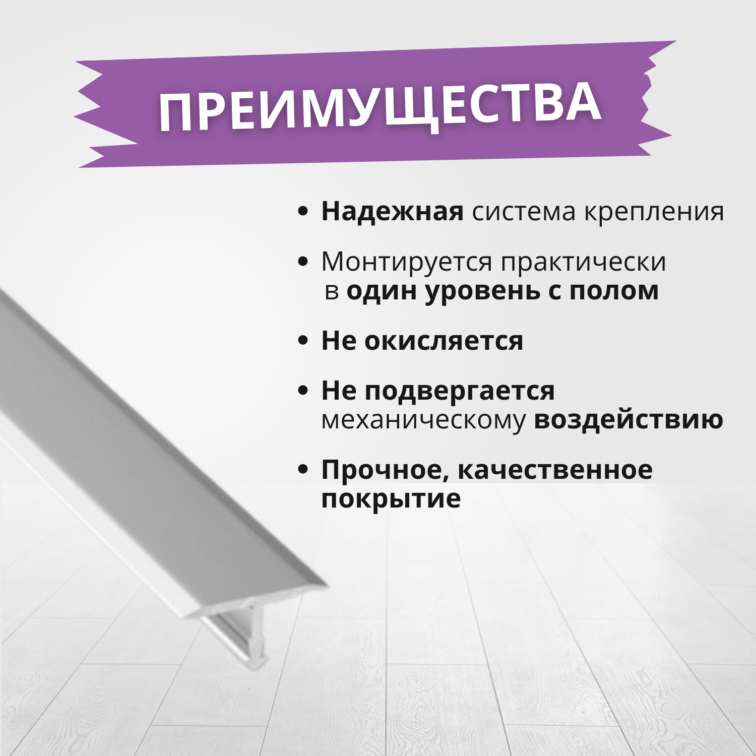 Порог (профиль) Т-образный Лука ЛС 10.2700.001л серебро 270 см. информация: