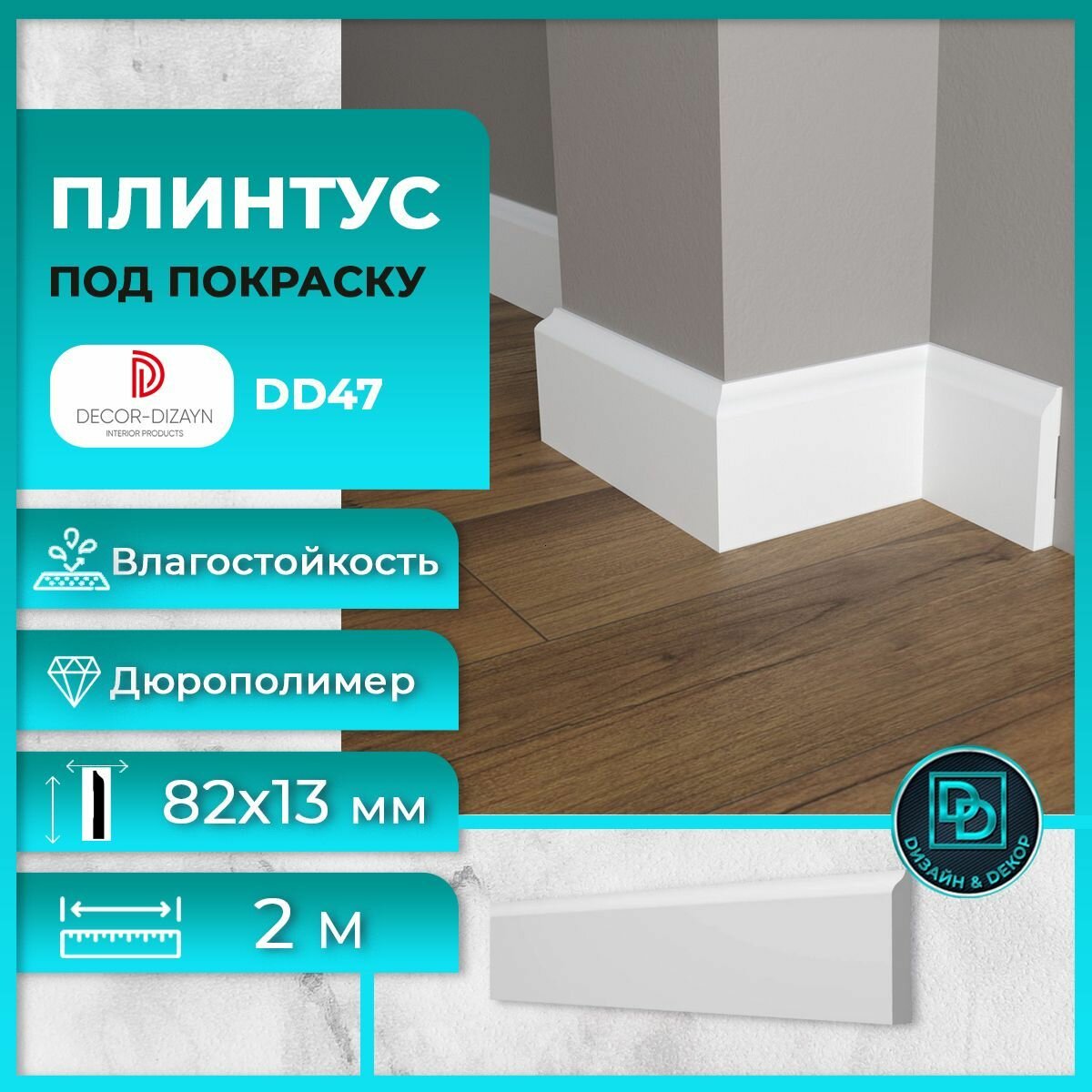 Напольный плинтус под покраску Декор Дизайн DD47 82x13x2000мм информация: