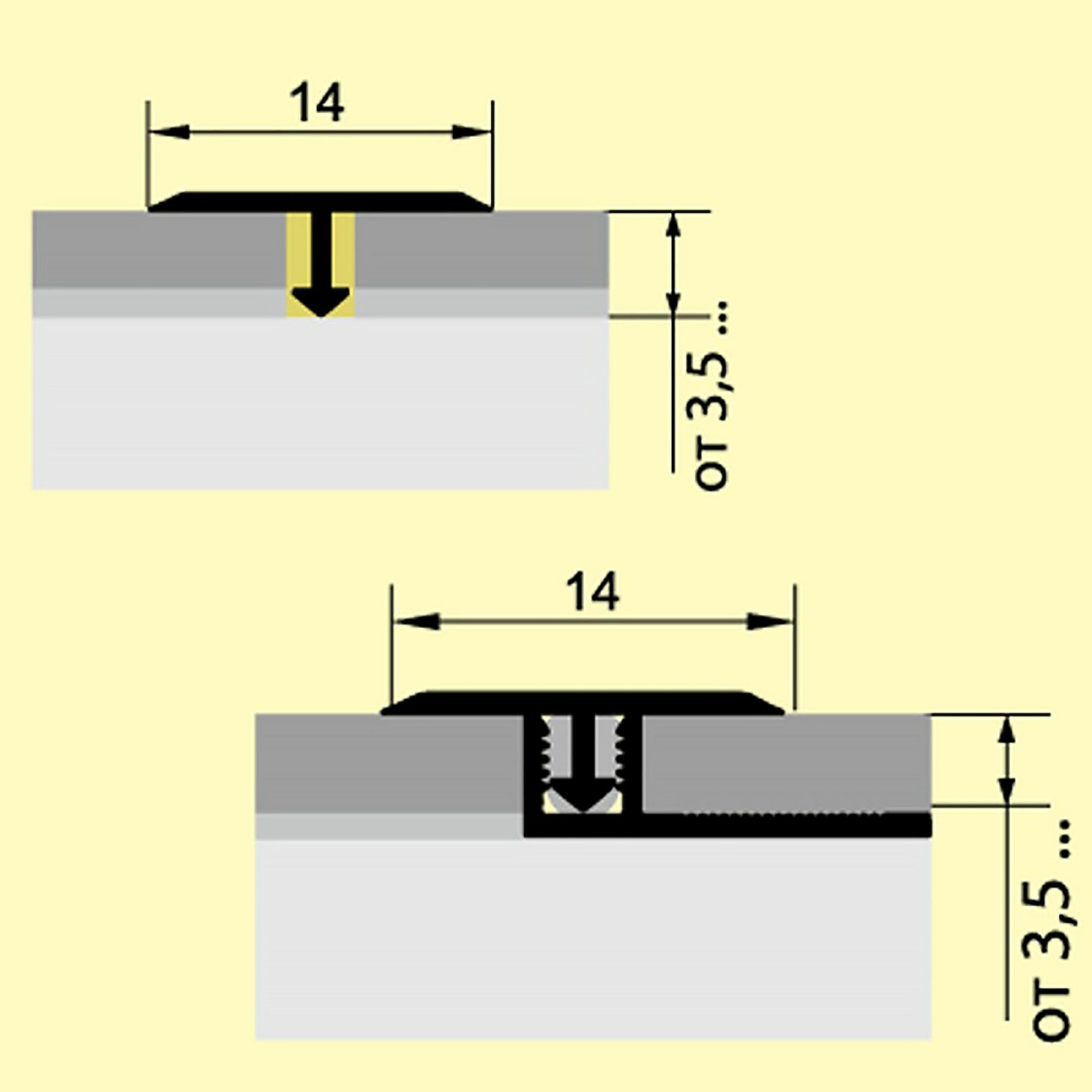 Порожек Т - профиль, ( укороченная ножка), 14 х 2700 мм, Черный матовый анод, для напольных покрытий, 2 шт информация: