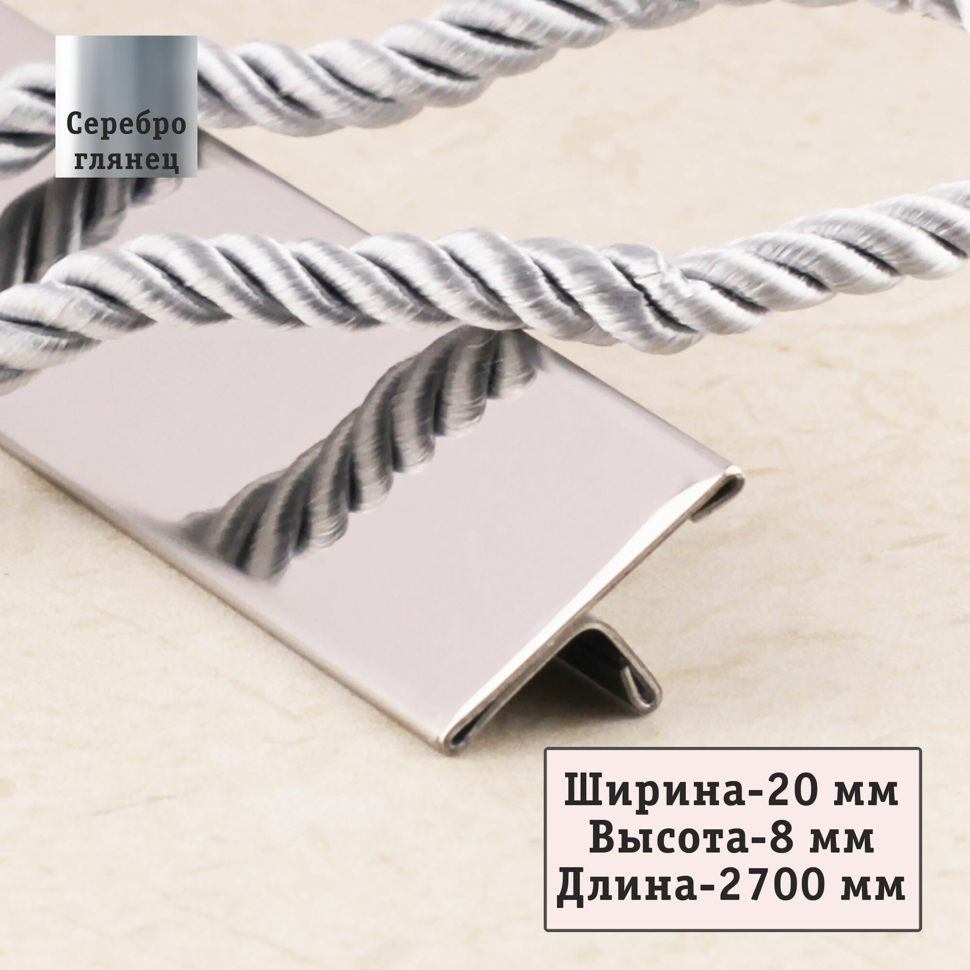 Порожек Т - профиль из нержавеющей стали, 20 х 2700 мм, Серебро глянец, для напольных покрытий, 2 шт 10 928 ₽