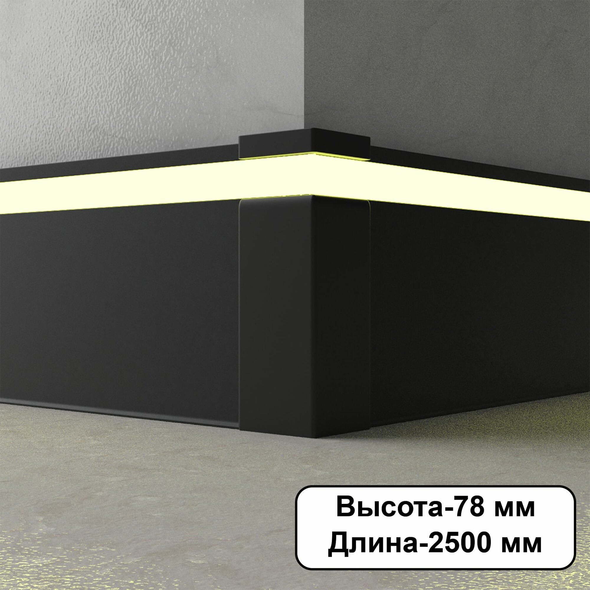 Плинтус алюминиевый напольный LED-78-80-2500 под подсветку, накладной, Черный матовый, 1 шт 2 705 ₽