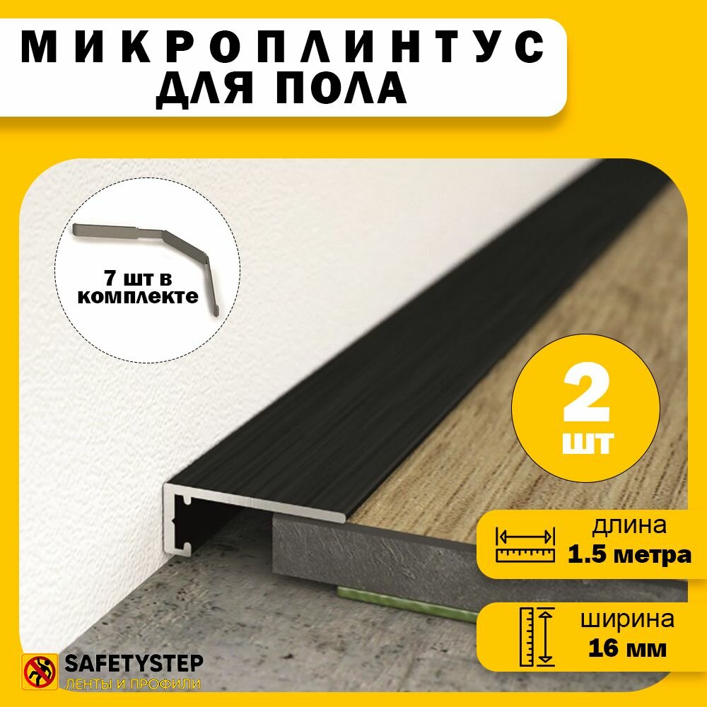 Микроплинтус щелевой скрытый, алюминиевый, длина 1.5 метра, 2 штуки, черный информация: