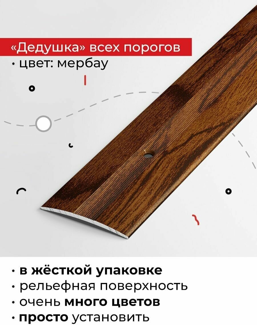 Порог одноуровневый Лука ПС-03, 900 мм x 37 мм, цвет мербау. информация: