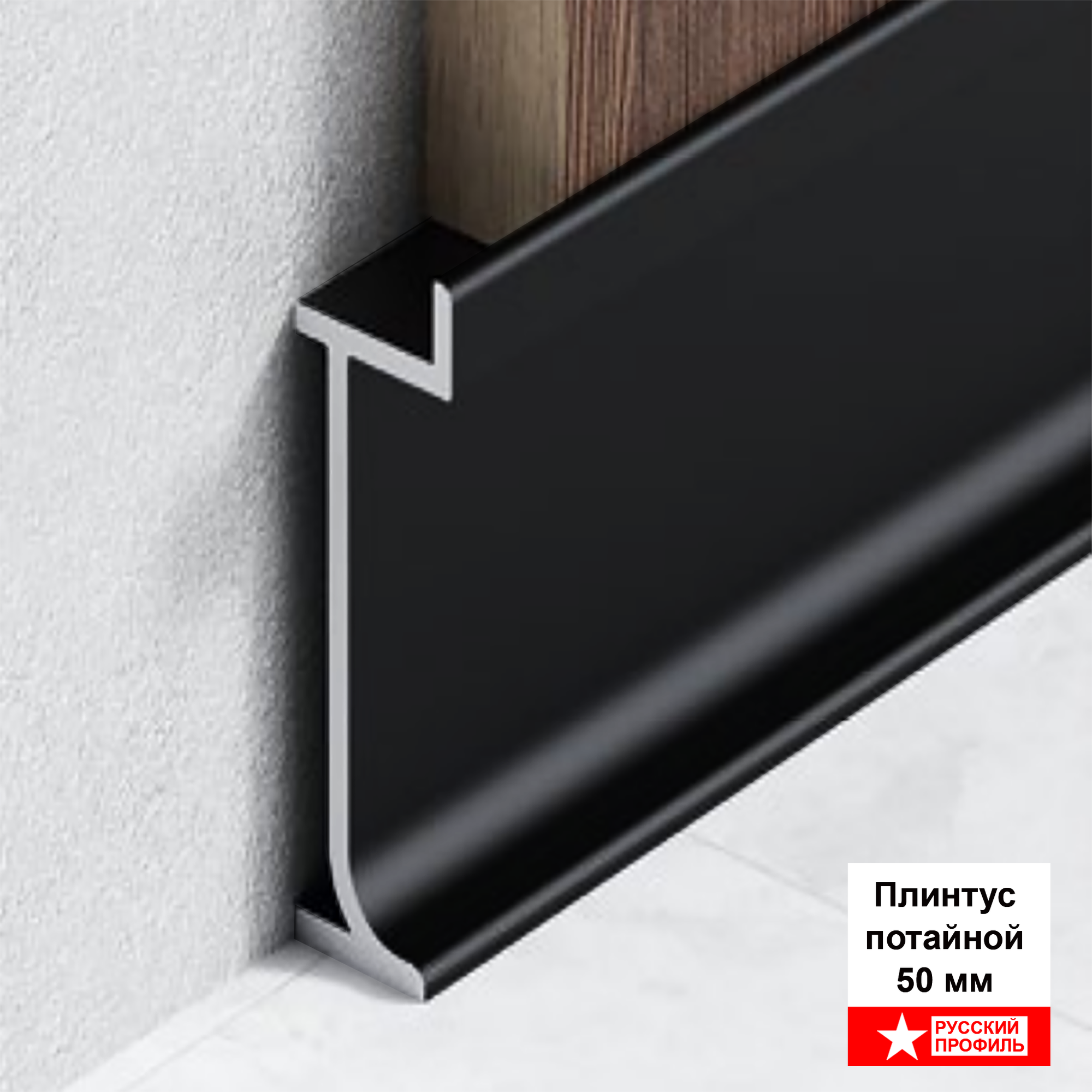 Отзывы на Плинтус скрытый алюминиевый SSZ-50-2500, профиль теневой, Черный матовый, 2 шт