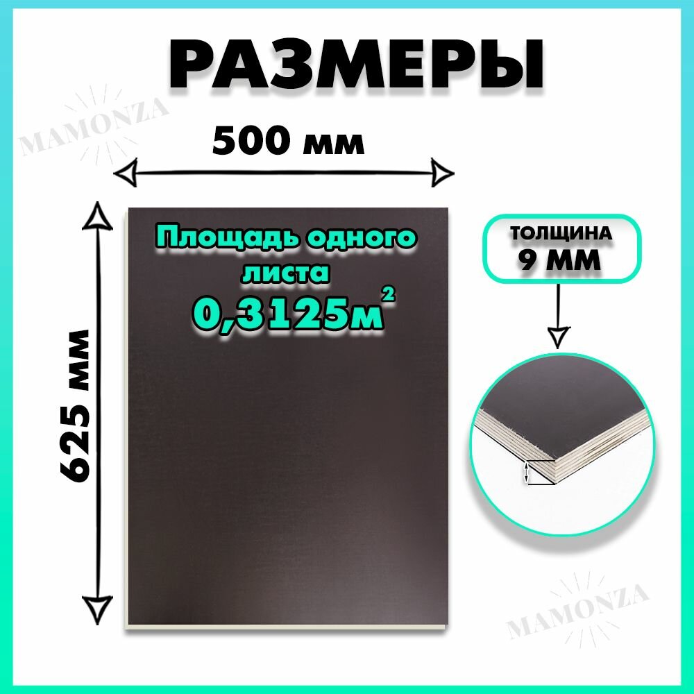 Фанера ФСФ ламинированная F/F толщина 6мм 500х500мм 5 листов 6 199 ₽