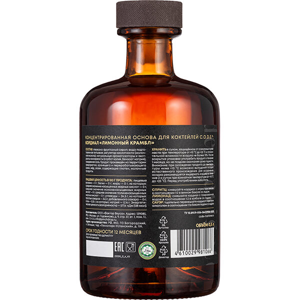 Кордиал «Лимонный Крамбл» C.O.D.E. стекло. 0,5л. D=7, H=18см, 6 штук информация: