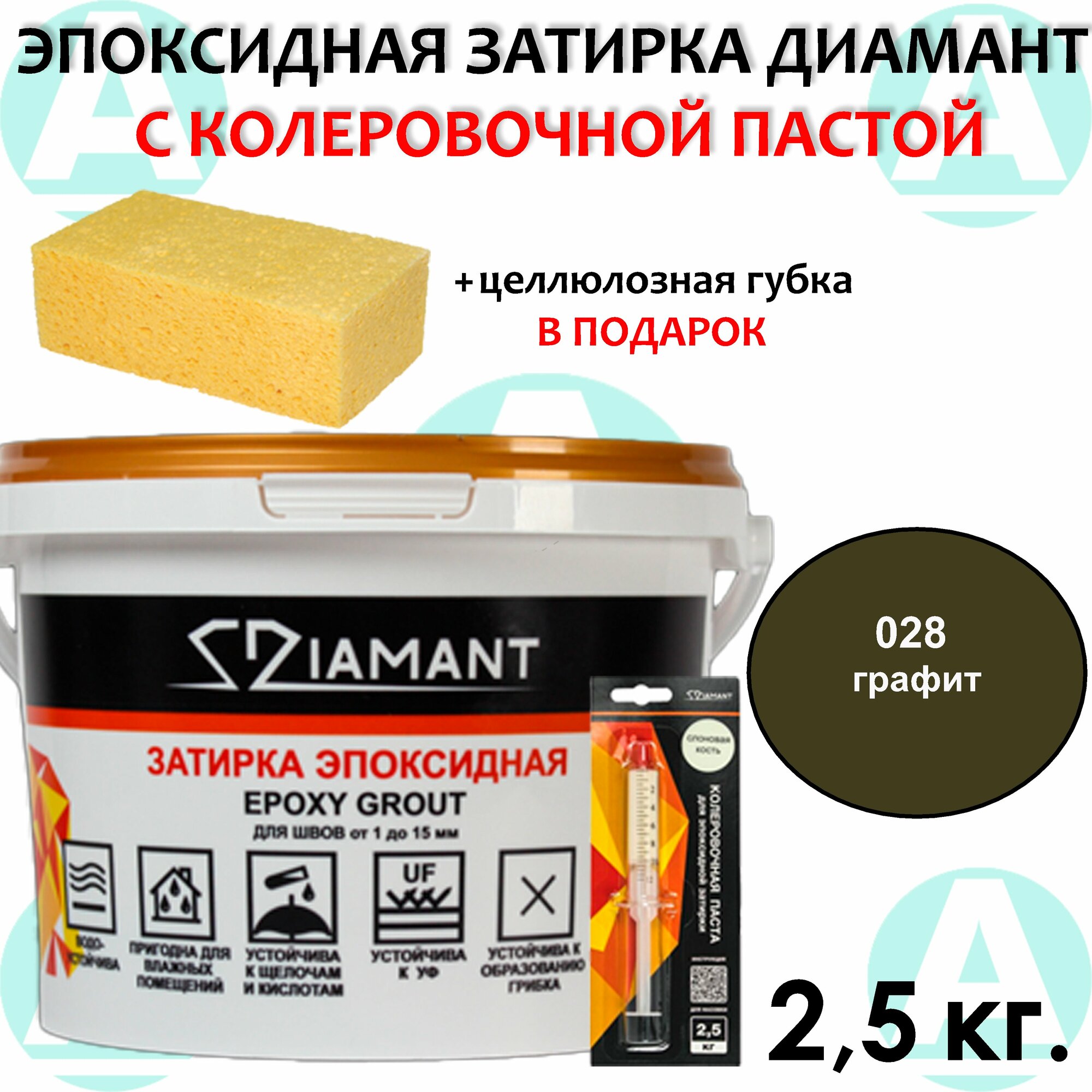 10 цен на Эпоксидная затирка Диамант 028 Графит 2,5кг + губка в подарок!