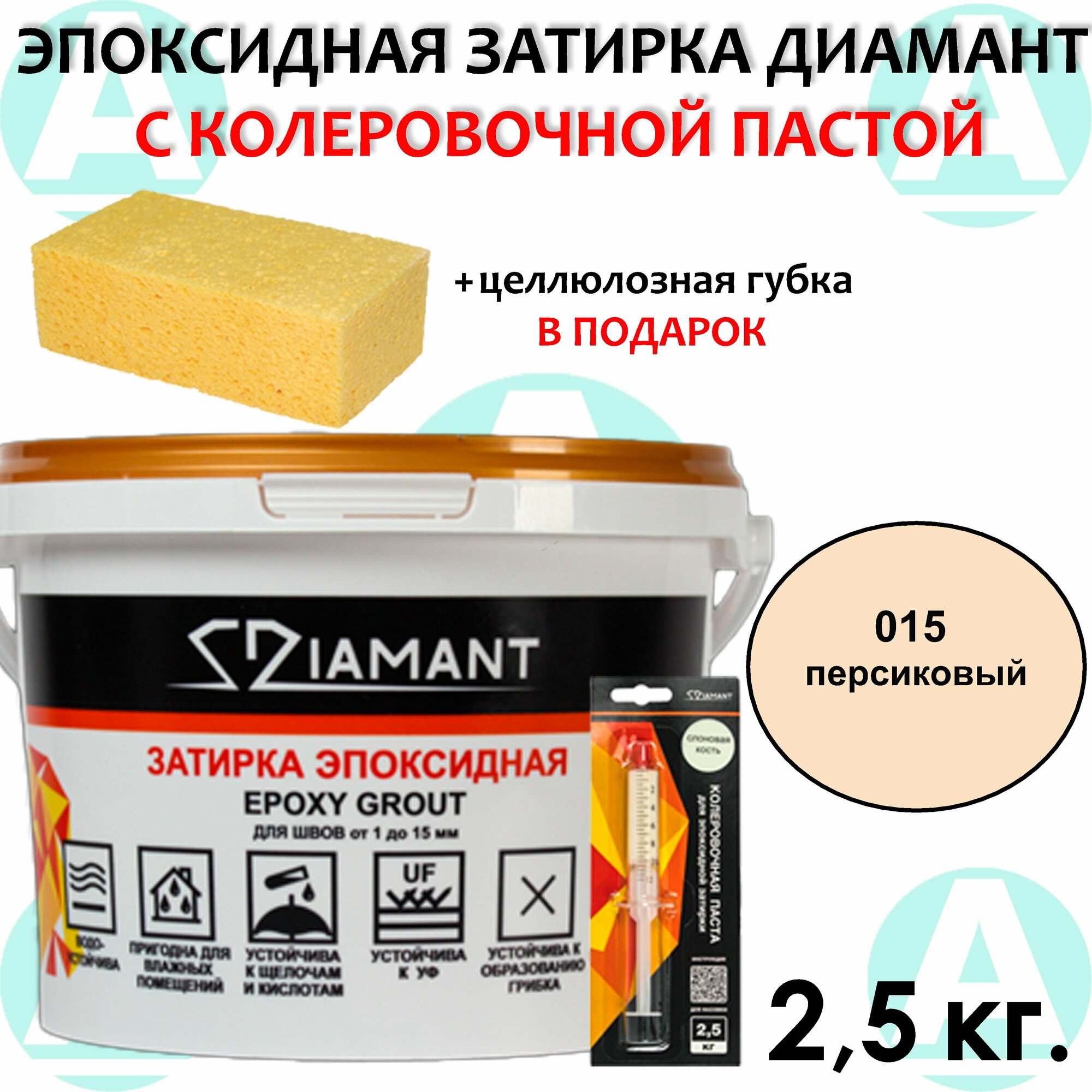 Эпоксидная затирка Диамант 015 Персик 2,5кг + губка в подарок! информация: