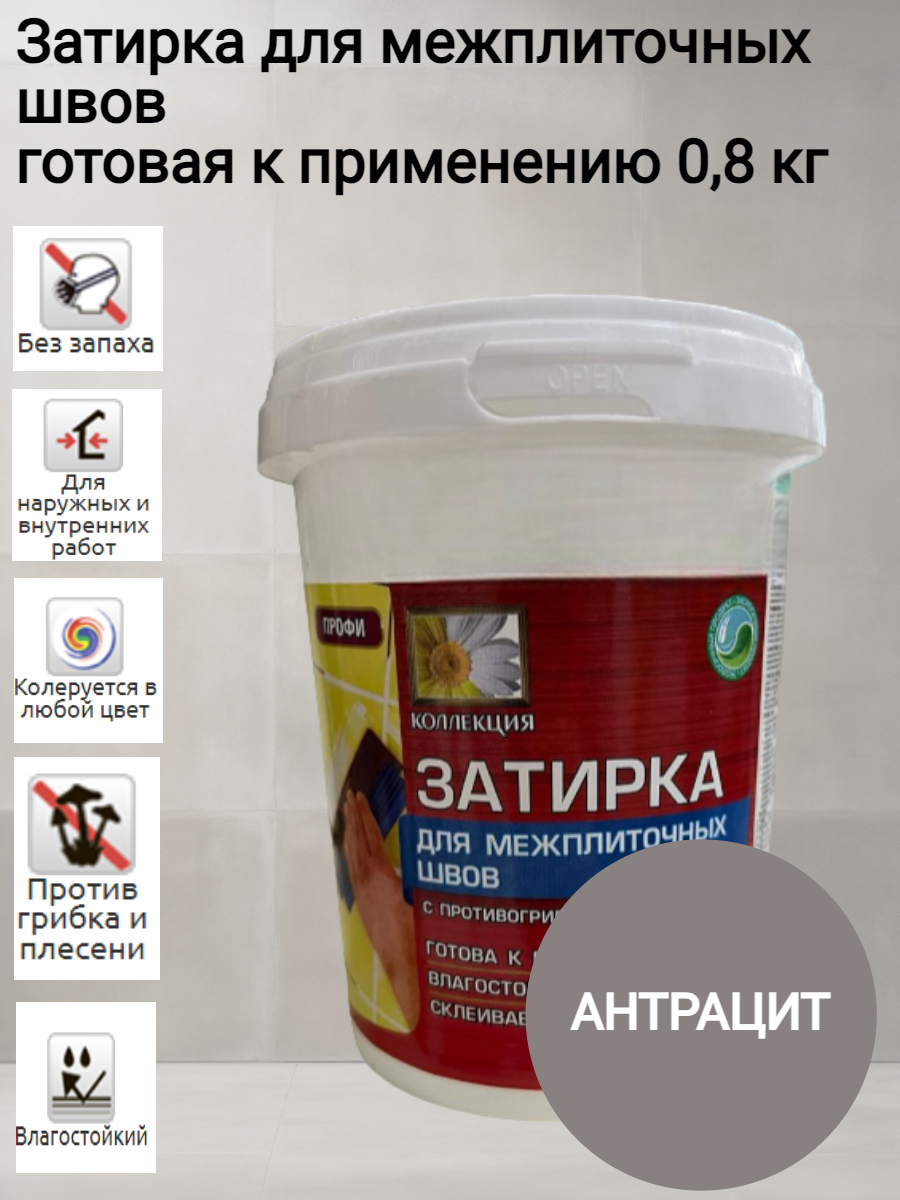 Затирка для плитки 0,8кг ведро антрацит готовая информация: