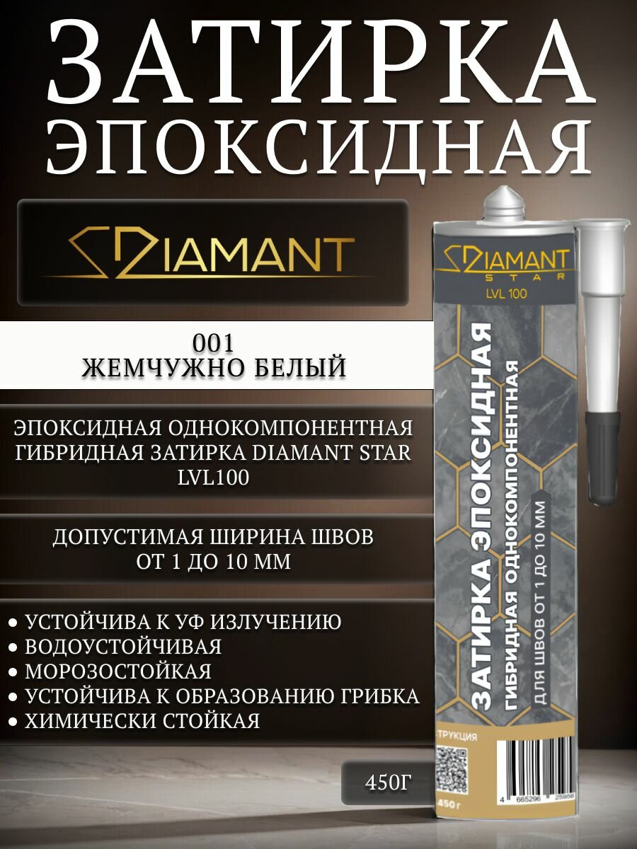 10 цен на Однокомпонентная эпоксидная гибридная затирка Diamant Star LVL 100 001 жемчужно-белый 450 г