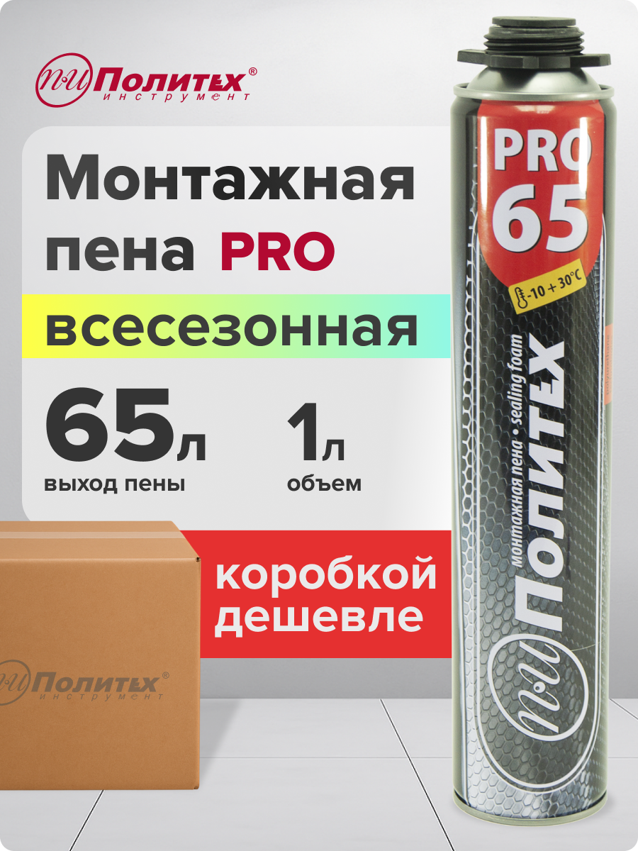 Мы выбрали 10 лучших цен на Пена монтажная профессиональная под пистолет, всесезонная, 1 л, Политех PRO 65. Перед тем как купить Пена монтажная профессиональная под пистолет, всесезонная, 1 л, Политех PRO 65 посмотрите найденные предложения из Яндекс Маркета и других сайтов на основе XML фидов.