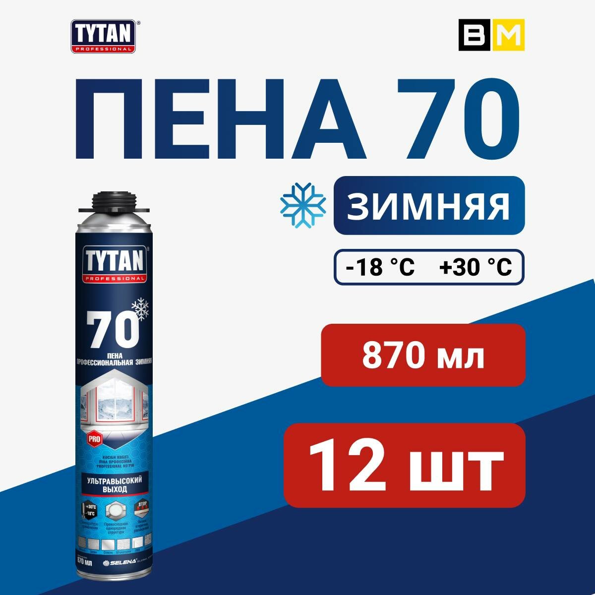 Пена монтажная профессиональная зимняя TYTAN 70, зимняя 870 мл, 12шт информация: