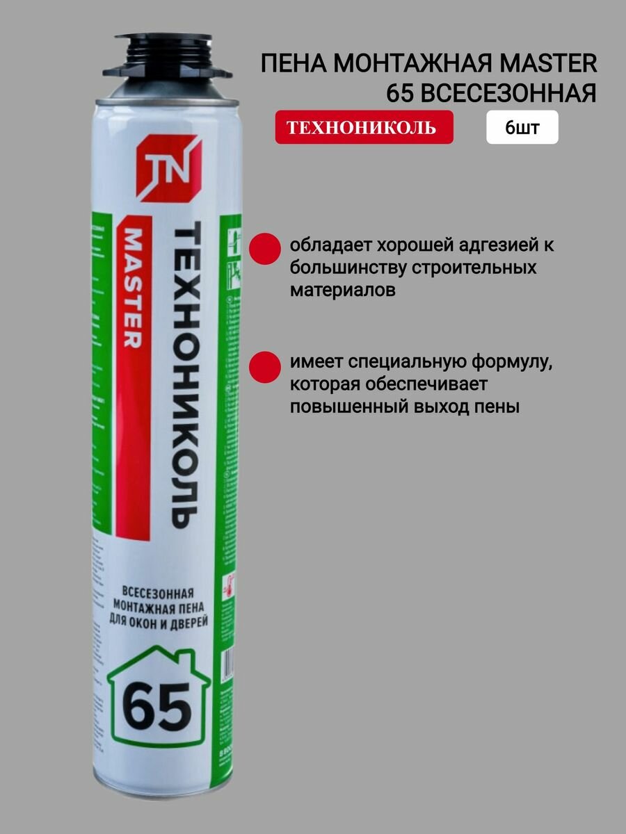 Отзывы на Монтажная пена Технониколь MASTER 65, профессиональная, 65 л, 6 баллончиков